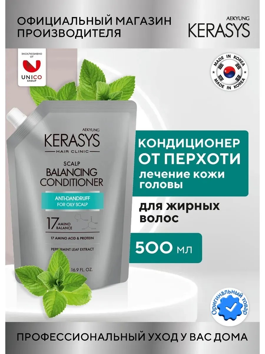 Kerasys Профессиональный Лечебный Корейский Кондиционер для волос от перхоти для жирных волос – это профессиональный протеиновый очищающий балансирующий бальзам с мятой, который предназначен для использования как мужчинами, так и женщинами.