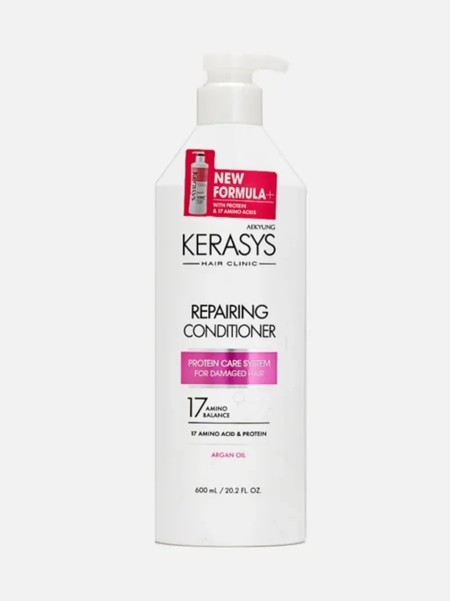 Kerasys Hair Clinic System Repairing Conditioner is designed for damaged hair caused by frequent chemical, heat, and sun exposure. This specially formulated formula for damaged hair with split ends restores the hair structure along its entire length, reducing split ends and breakage. Hair regains vitality, shine, and elasticity. Enriched with therapeutic liposomes that penetrate the hair's cellular structure and provide a restorative and healing effect.