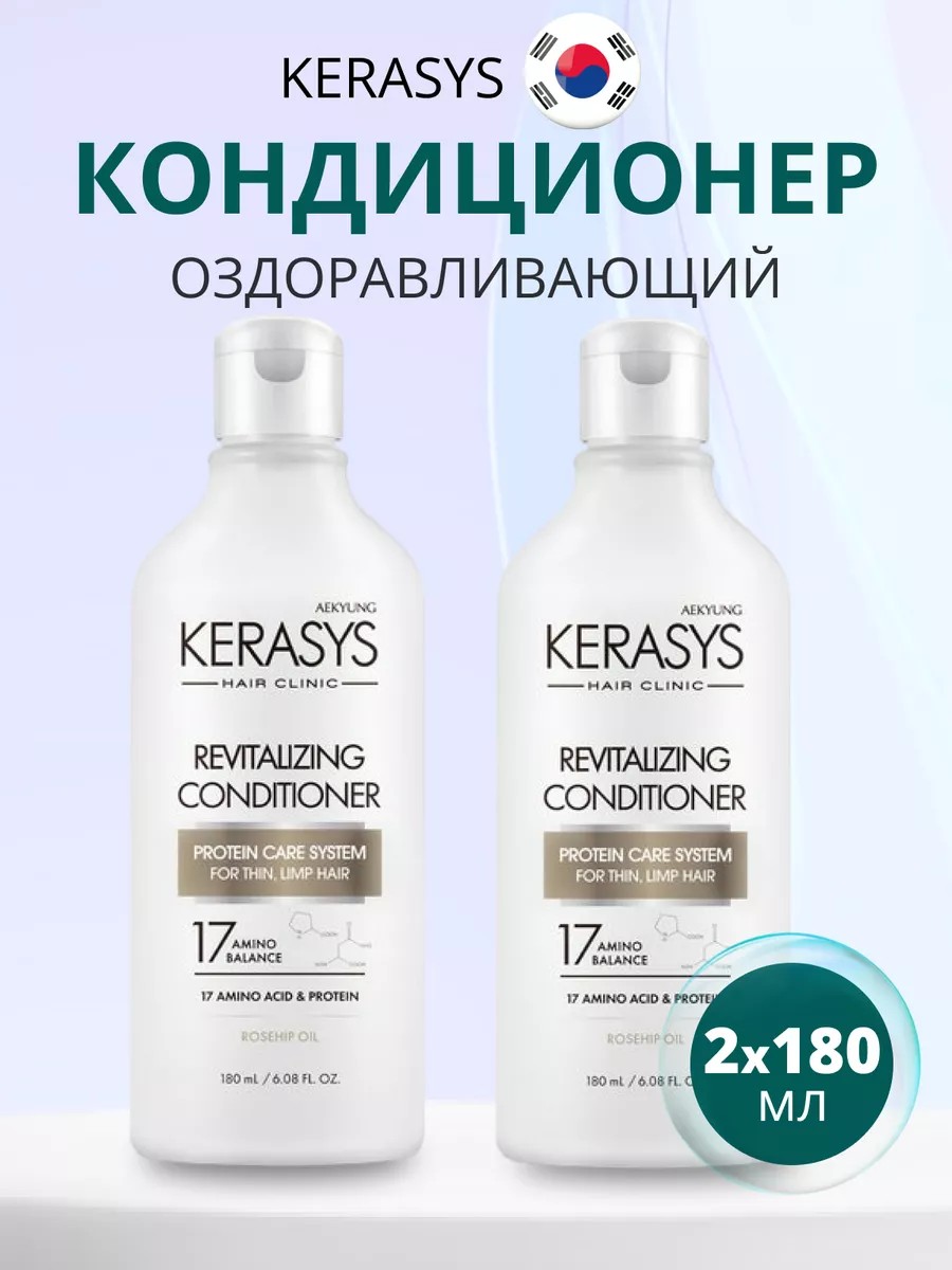Кондиционер для волос Kerasys оздоравливающий 2*180 мл ! Специально разработанная формула для тонких и ослабленных волос, укрепляет и восстанавливает структуру волос по всей длине. Волосы обретают жизненную силу, эластичность и объем. Обогащен лечебными веществами в составе липосом, которые проникают в клеточные структуры волоса и оказывают восстанавливающее и лечебное действие. Содержит кератиновый комплекс и витамины А и Е. Эффективность применения доказана клинически институтами дерматологии Германии и США.Результат применения на 75% больше эластичности, на 75% дольше держится укладка,восполняет недостаток собственного белка в структуре волос.