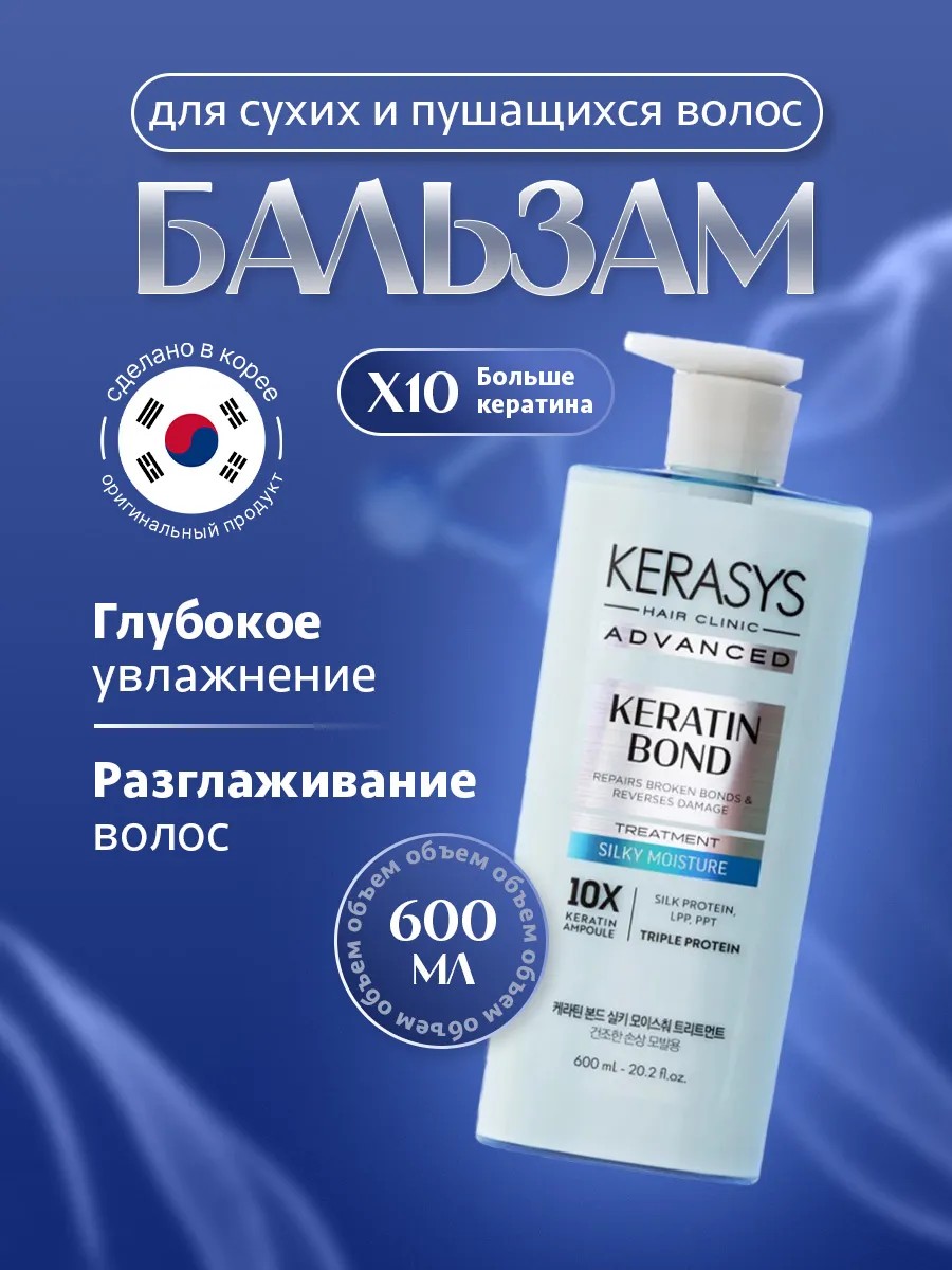 Kerasys Advanced Бальзам для волос Keratin Bond Шелковое увлажнение 600мл