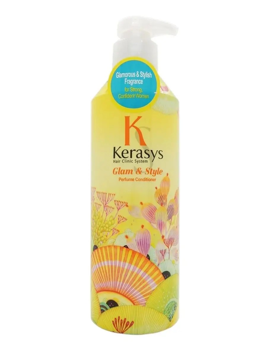 Kerasis Glamour Hair Conditioner Glam & Stylish Perfumed Conditioner, 600 ml. Chamomile flower extract and argan oil, included in the Glam & Stylish Perfumed Rinse conditioner, give hair extra shine and elasticity, maintaining a smooth texture along the entire length. The perfume composition consists of: Top note: fragrant vetch, osmanthus.