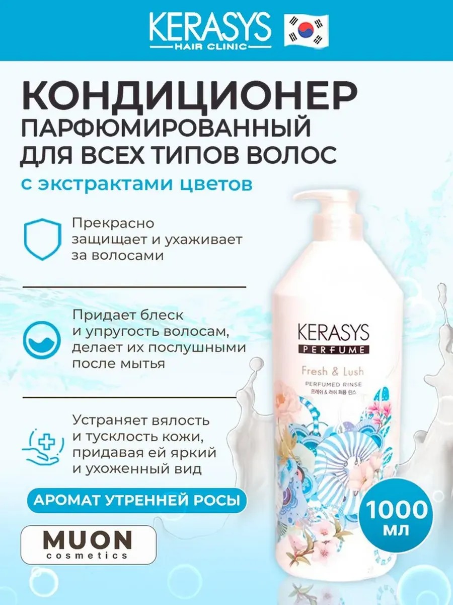 Kerasys Fresh And Lush Perfumed Rines – увлажняющий парфюмированный кондиционер-бальзам для поврежденных и тонких волос прекрасно защищает и ухаживает за волосами, он придает блеск и упругость волосам, делает их послушными после мытья.