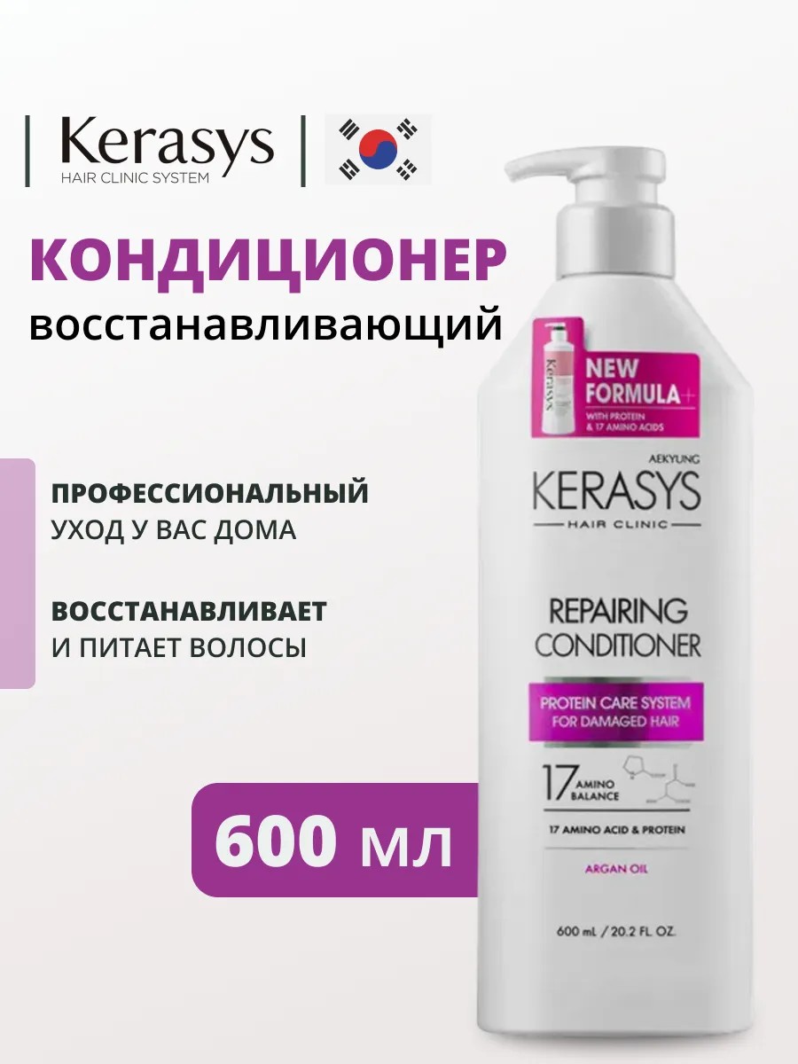 Кондиционер для волос Damage Care Repairing 600 мл для профессионального ухода для ломких и поврежденных волос с секущимися концами. Корейский кондиционер для волос обеспечивает глубокое увлажнение и восстановление структуры волоса по всей длине, предотвращая ломкость и укрепляя ослабленные кончики волос. Профессиональный кондиционер содержит натуральные масла арганы, жожоба и авокадо, которые питают волосы, предотвращают выпадение и стимулируют рост волос. Экстракты трав укрепляют волосы и кожу головы, придают волосам естественный блеск, гладкость и здоровый вид, обеспечивая особую заботу для кончиков волос. Восстанавливающий бальзам для волос облегчает расчесывание и укладку, защищает волосы от негативного воздействия фена, средств для укладки волос и внешней среды. Корейский кондиционер прошел дерматологические испытания. Средство подходит для секущихся, поврежденных, обесцвеченных и окрашенных волос. Для большего эффекта используйте с шампунем и корейской косметикой для волос Kerasys.