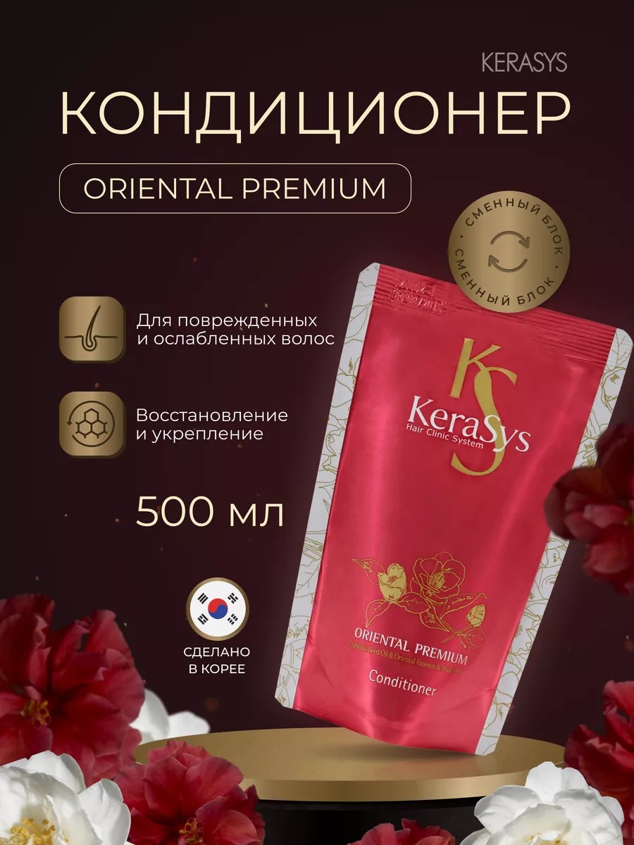 KeraSys – представляет уникальную линейку профессиональных ухаживающих средств для кожи головы и волос. Кондиционер «Oriental Premium» разработан для очень поврежденных волос. Этот профессиональный продукт из Кореи разработан специально для женщин, которые ценят качественный уход за своими волосами. Формула эффективно укрепляет корни волос, защищает локоны от преждевременного выпадения, защищает от ультрафиолетовых лучей. Увлажняющий кондиционер хорошо и деликатно воздействует на волосы. Они становятся мягкие и приятные, лежат гладким полотном. В результате регулярного применения волосы обретают жизненную силу и блеск, разглаживаются, укрепляются. Это регенерирующее средство способно вернуть тусклым и ломким локонам здоровый внешний вид и силу. Активные компоненты средства проникают вглубь структуры волос и заполняют полые участки, восстанавливая природную красоту и гладкость. Масло камелии укрепляет хрупкие и ломкие волосы, делает их шелковистыми по всей длине. Кератиновый комплекс питает и разглаживает поврежденный волос. Композиция из шести традиционных восточных трав (женьшень, жгун-корень, орхидея, ангелика, гранат, листья камелии) укрепляет корни волос и предотвращает преждевременное выпадение. Бальзам придает ухоженный и здоровый вид волосам. Интенсивная густая структура мягко обволакивает каждую волосинку и высвобождает энергию, благодаря чему увеличивается объем и густота волос. Кондиционер - отличный подарочный вариант для женщины или мужчины любого возраста: от подростка до взрослого человека на 8 марта, 14 февраля, 23 февраля, День рождения, Новый год и др праздники для любимой девушки или парня, мамы или папы, бабушки или дедушки, сестры или брата, подруги или друга. Очаруйте всех своими шикарными локонами, благодаря уникальному косметическому средству от корейских производителей.
