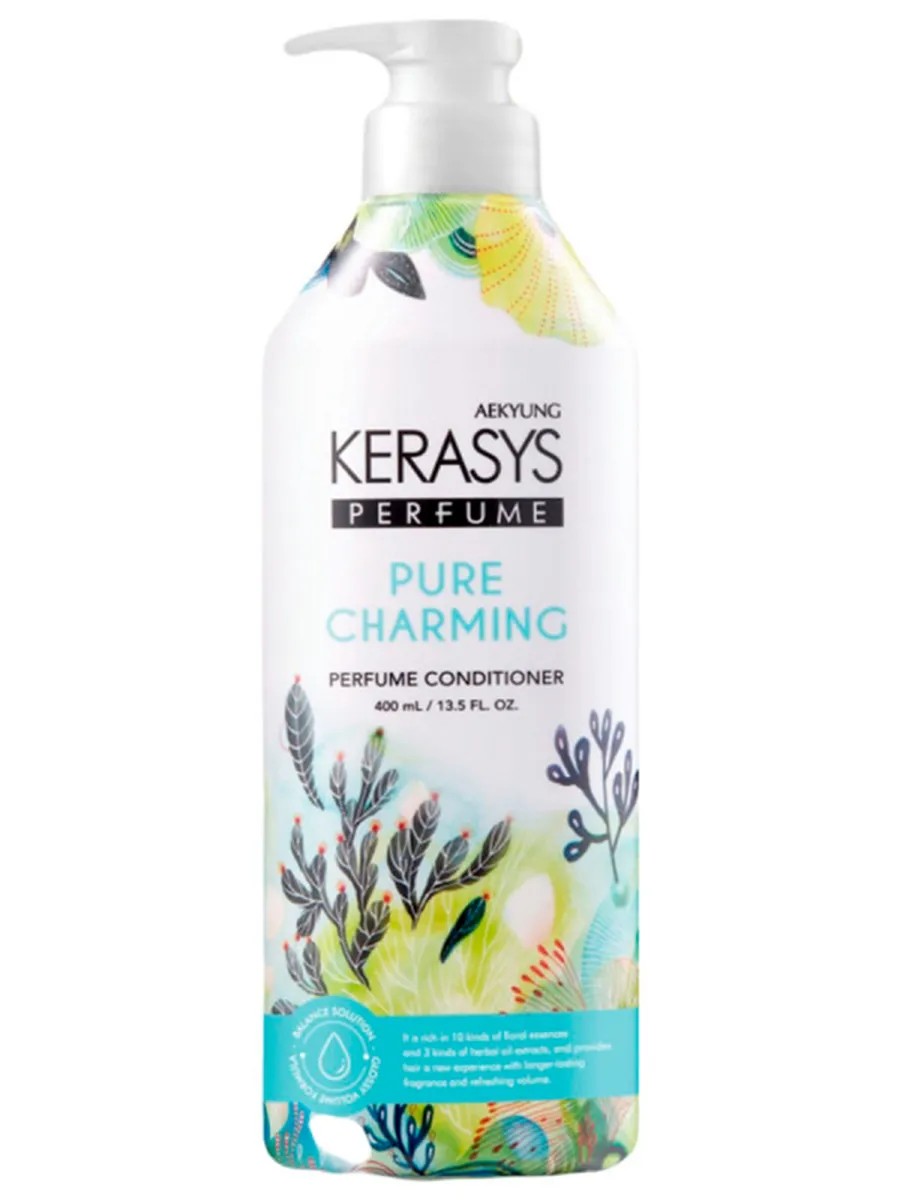 Откройте для себя Kerasys Pure & Charming — парфюмированный бальзам для волос объемом 400 мл, который сочетает в себе изысканный аромат и эффективную заботу о ваших локонах.