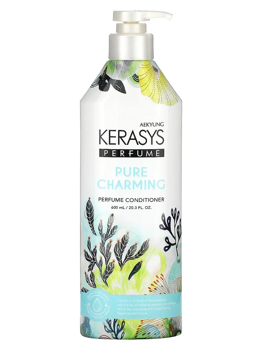 Откройте для себя Kerasys Pure & Charming — парфюмированный бальзам для волос объемом 600 мл, который сочетает в себе изысканный аромат и эффективную заботу о ваших локонах.