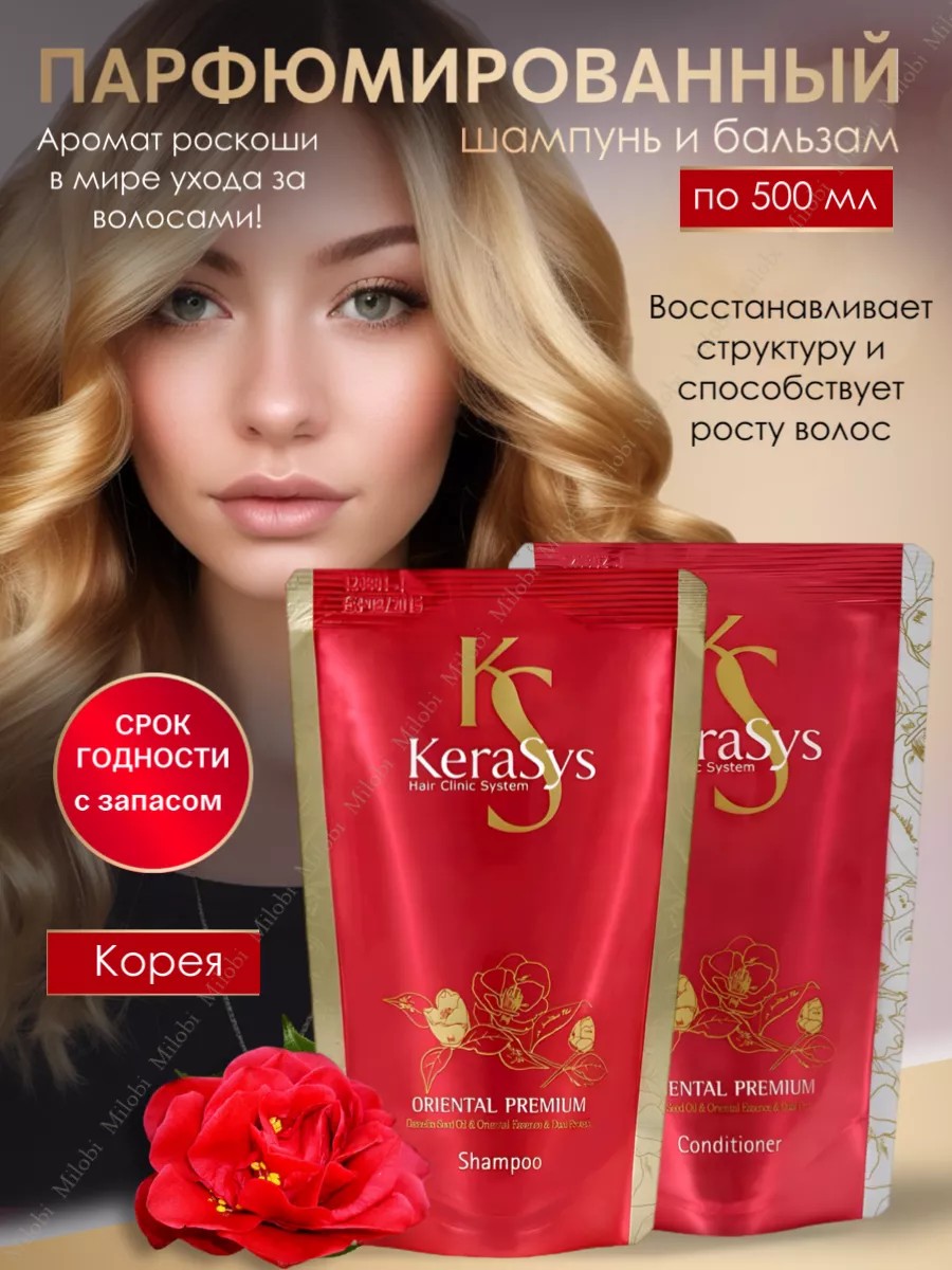 Этот набор Kerasys Oriental Premium включает в себя шампунь 500 мл и кондиционер 500мл, идеально подходящие для ухода за сухими, ломкими и вьющимися волосами. Оба средства обладают натуральным составом, включая масло семян баобаба, а парфюмированный аромат добавит нотку свежести в ежедневную рутину. В набор входит профессиональный шампунь Kerasys, корейский продукт для увлажнения и восстановления волос, и увлажняющий кондиционер для волос. Шампунь создан для всех типов волос: окрашенных, поврежденных, мелированных и седых пористых; рыжих и светлых кудрей; блондинок и брюнеток. Его регулярное использование способствует легкому расчесыванию и уменьшает секущиеся кончики. Шампунь дерматологически протестирован, что подтверждает его безопасность даже для самой чувствительной кожи головы. Бессульфатный состав защищает волосы от вредного воздействия агрессивных компонентов. Шампунь содержит витамины и полезные элементы, обеспечивающие здоровый рост волос. Кондиционер является отличным дополнением к шампуню в этом наборе и выполняет функцию бальзама ополаскивателя с эффектом ламинирования. Он подходит как женщинам, так и мужчинам. В составе кондиционера также присутствует кератин – ключевой компонент для восстановления структуры волос изнутри. Кондиционер улучшает объем прядей, ухаживает за тонкими локонами, обеспечивая их укрепление по всей длине. Уходовое средство от Керасис обладает благоприятным воздействием на меллированные волосы благодаря интеграции масел и трав в составе, лечебный эффект средств помогает вернуть естественный блеск даже самым тусклым локонам после термических укладок или химических процедур. Удобный сменный блок в мягкой упаковке (дой-пак) очень просто хранить и использовать, каждое использование набора косметики дарит дополнительный объем шевелюре без утяжеления прядей. Комплект предназначен не только для женщин – это замечательный подарок также для мужчин. Особенно приятно такой подарок получить в виде готового бокса уходовых средств красоты.