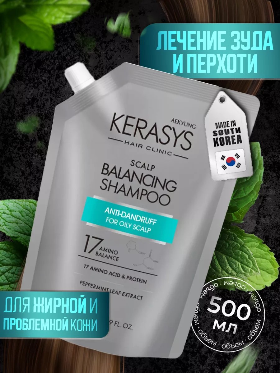 Шампунь для волос профессиональный от перхоти KeraSys Scalp Balancing 500 мл для жирной и проблемной кожи головы склонной к зуду и перхоти. Идет в мягкой упаковке как запасной блок (запаска).