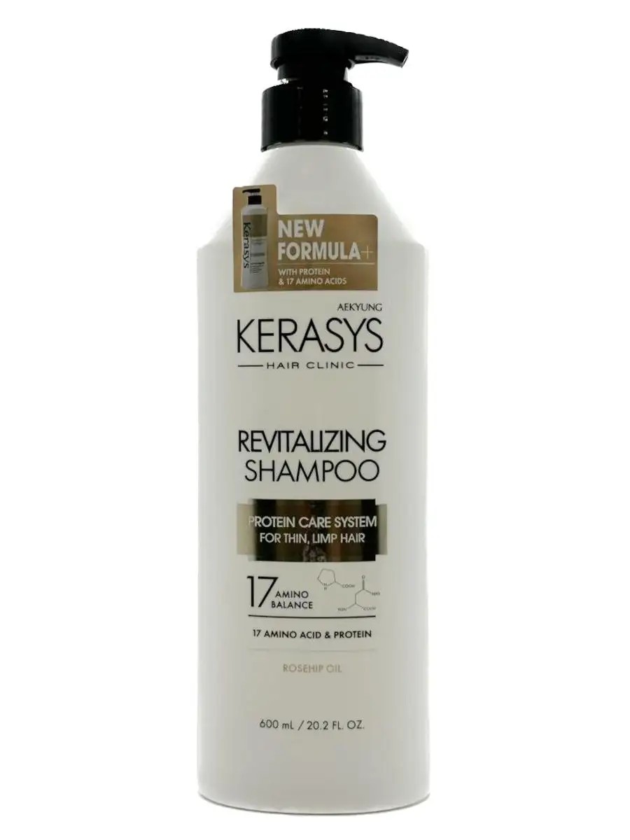 Enriched with healing substances that penetrate the cellular structure of the hair and have a restorative and healing effect. Contains vitamins A and E. Kerasys revitalizing shampoo.