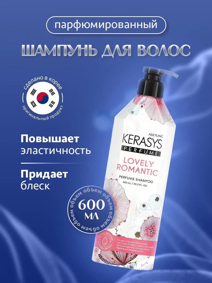 Kerasys Lovely Romantic Perfumed Shampoo for Women, 600ml. This superb product is ideal for all hair types, especially damaged, dry, and brittle hair. This unique Korean shampoo formula, enriched with beneficial ingredients, helps restore and strengthen the hair structure, preventing breakage and split ends. Active ingredients include jojoba oil, camellia extract, and keratin, which work wonders on your hair. After using Kerasys Lovely Romantic, your hair will be transformed – it will become soft, shiny, manageable, and easy to comb. The delicate texture and enchanting aroma of this professional shampoo for natural and color-treated hair will leave you feeling refreshed and uplifted. Top notes of the fragrance include orange blossom, white peach, and freesia; middle notes include jasmine, magnolia, daisy, and lily-of-the-valley; and base notes include cedar, white musk, and amber. Using this shampoo from the Korean brand Kerasys is simple and convenient: apply a small amount to damp hair, massage, and then rinse. Repeat as needed. Kerasys Lovely Romantic is your key to healthy, shiny, and fragrant hair!