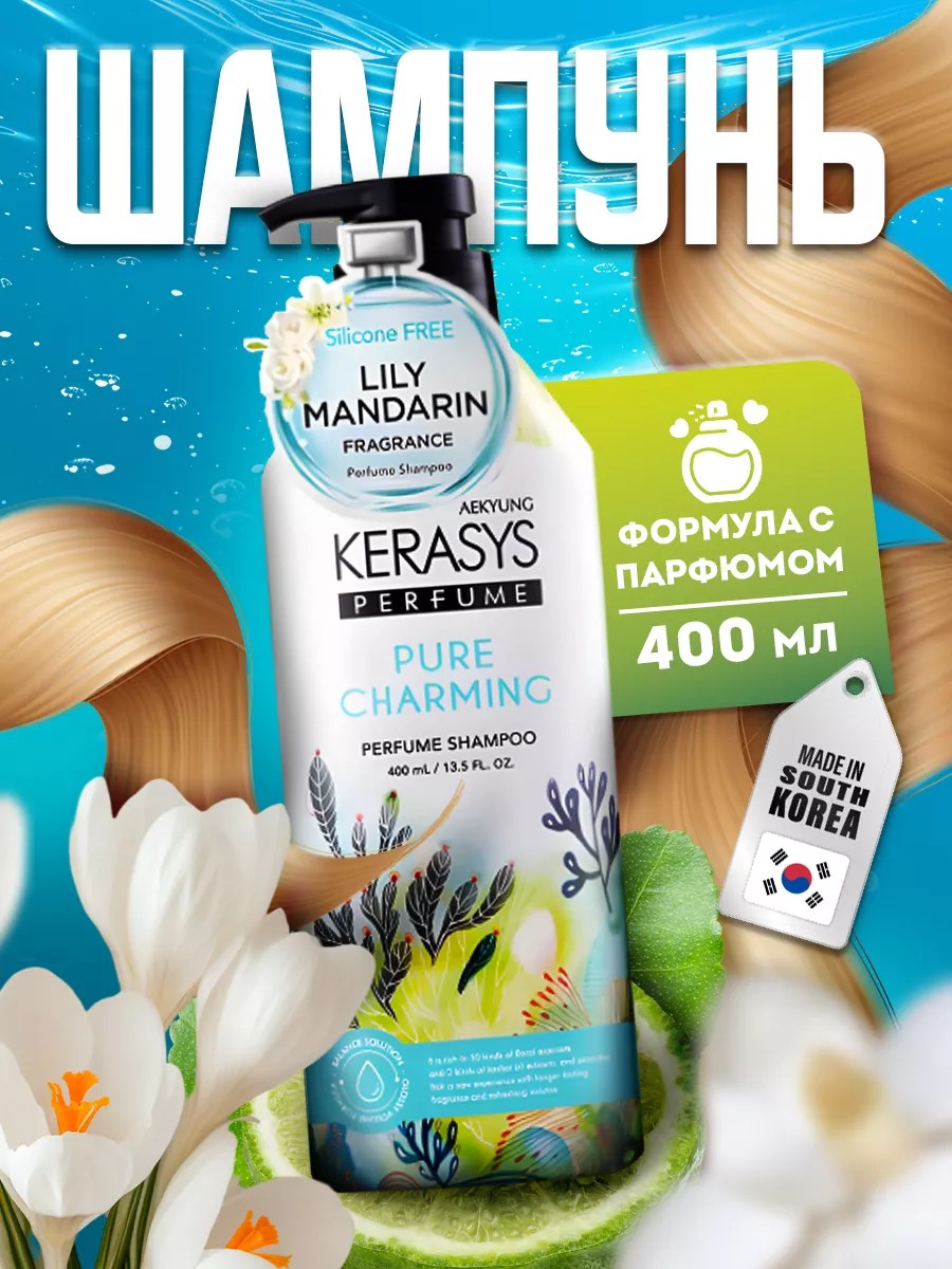 Парфюмированные шампуни и бальзамы для волос произведены корейским брендом Керасис в Корее.