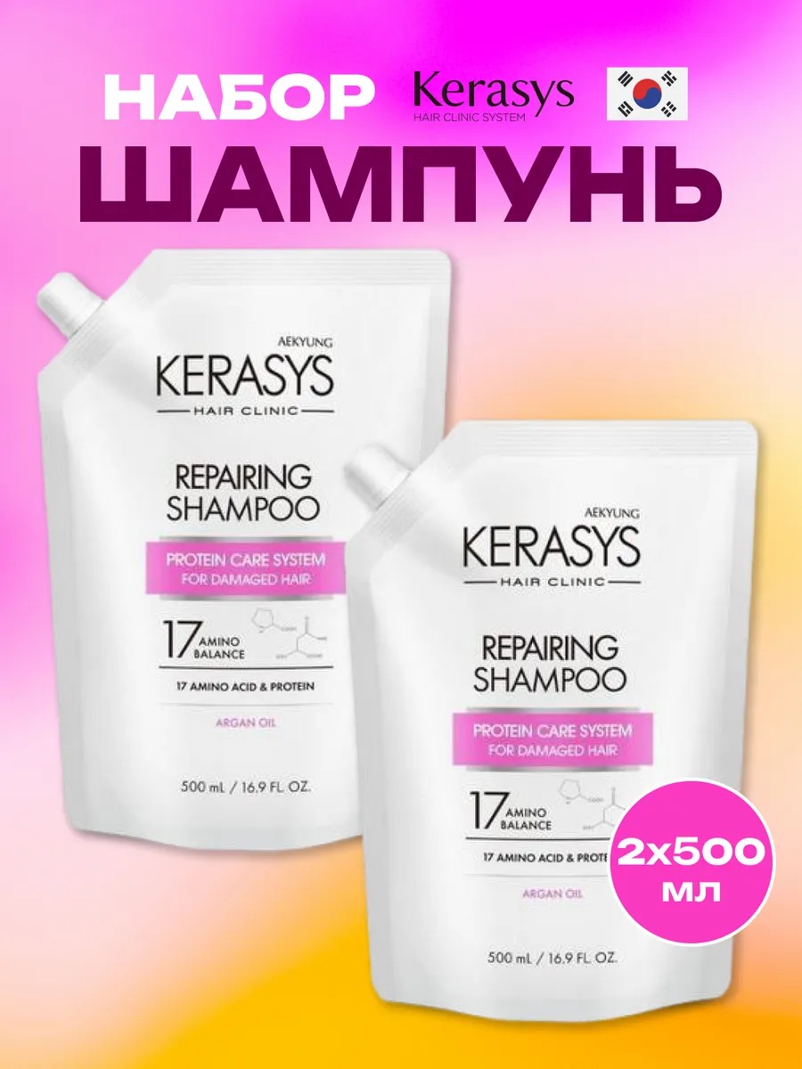 Kerasys Шампунь для волос восстанавливающий корея запаска 2*500 мл