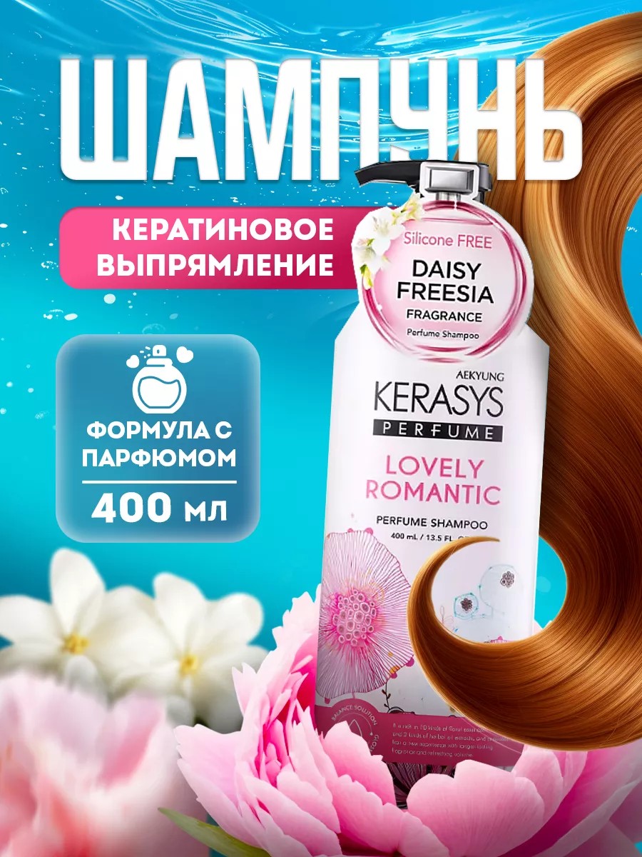 Профессиональный женский шампунь для волос парфюмированный Kerasys Perfume Lovely Romantic для поврежденных волос секущимися кончиками 400 мл.