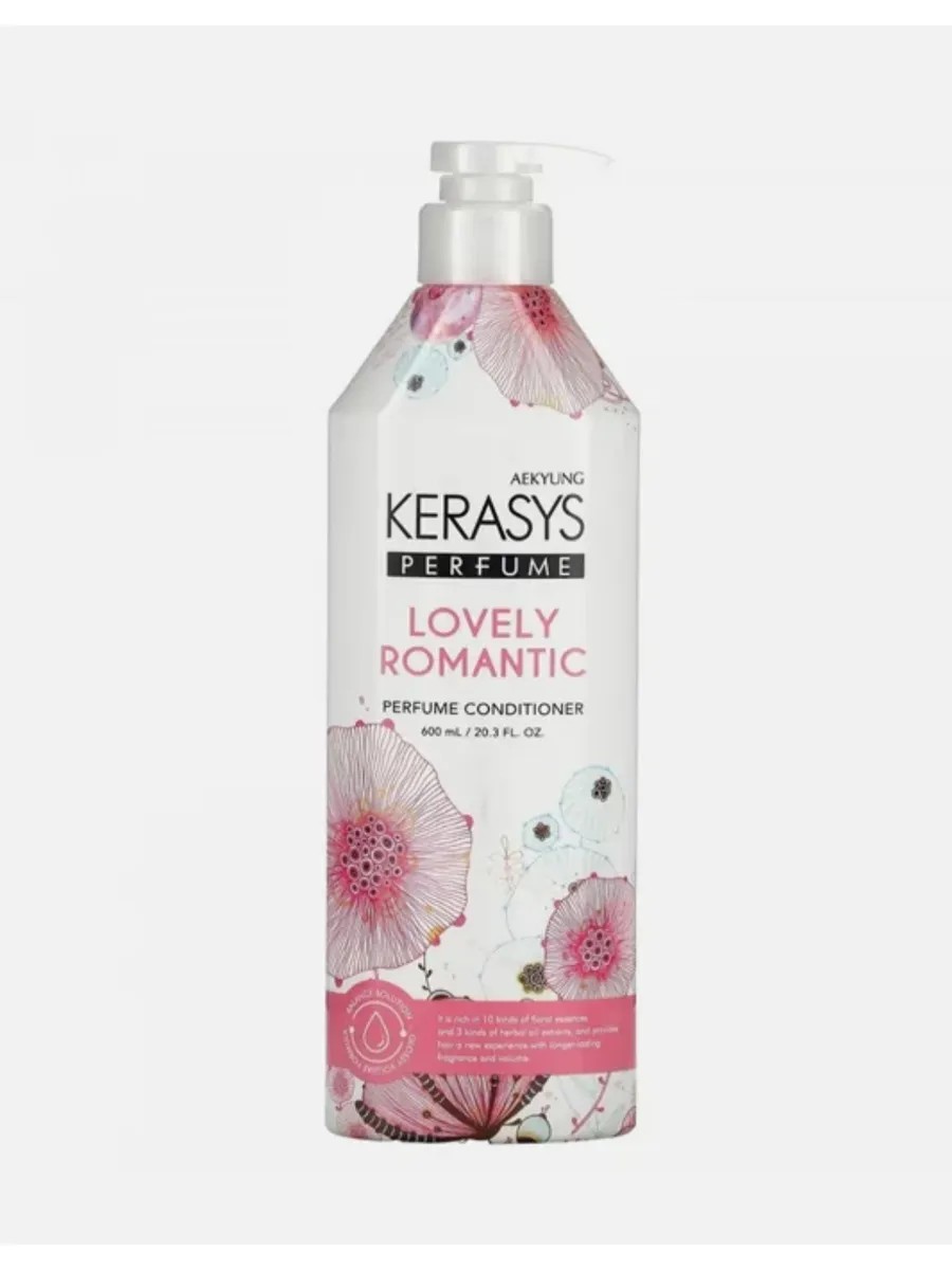 Perfumed conditioner for damaged hair, Kerasys Perfumed Line Lovely & Romantic Conditioner, is enriched with wheat proteins and organic extracts of daisy and basil, which help restore and moisturize hair, increasing its firmness and elasticity.