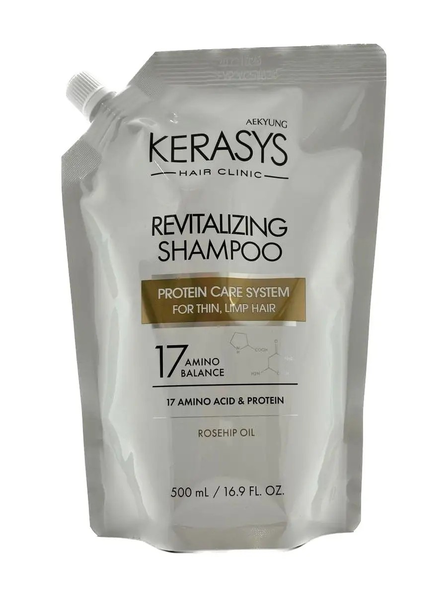 KeraSis Revitalizing Shampoo (refill), 500 ml. This fragrant, restorative shampoo with Korean argan oil is specially formulated for fine, weakened, or color-treated hair. This women's shampoo refill is suitable for light-colored and permed hair. This shampoo for unruly hair strengthens and restores the hair structure along the entire length and is suitable for daily use. Contains argan, avocado, and jojoba oils, lingonberry extract, and alpine herbal extracts, rich in vitamins and minerals. Like any professional shampoo, Kerasis shampoo not only cleanses but also cares for fine, weakened, and difficult-to-style hair. The shampoo refill saves money and is safe to carry on the go, as it won't break or break. Shampoo in a doy-pack packaging is lightweight compared to rigid packaging for the same products. With regular use, Korean cosmetics help restore vitality, elasticity, and volume to hair.