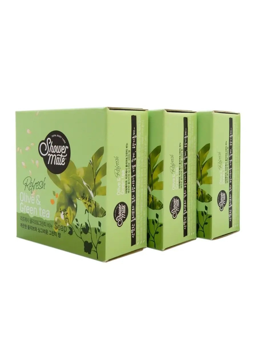 KeraSys Shower Mate solid toilet soap set with olives and green tea, 3x100g.