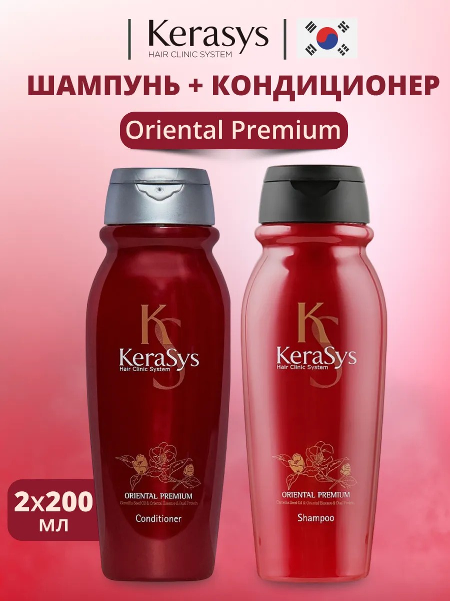 Набор для волос Oriental Premium для глубокой очистки и профессионального ухода для всех типов волос. Универсальный шампунь и кондиционер содержат кератин, который приникая в структуру волоса, питают волосы и заполняют пустоты поврежденных волос, предотвращая пористость и ломкость. Натуральное масло японской камелии увлажняет волосы, обеспечивает особую заботу для ломких волос и ослабленных кончиков волос против сечения. Органический экстракт жгун-корня укрепляет волосы, предотвращает выпадение и стимулирует рост волос. Экстракты трав и протеины делают волосы послушными, гладкими и шелковистыми по всей длине, придают волосам здоровый вид и блеск. Профессиональный шампунь и кондиционер защищают волосы от УФ-излучения, облегчают расчесывание и укладку. Корейский шампунь и кондиционер прошли дерматологические испытания. Средства подходят для секущихся, поврежденных, обесцвеченных и окрашенных волос. Для большего эффекта используйте с бальзамами кондиционерами и корейской косметикой для волос Kerasys.А еще шампунь и бальзам - прекрасные средства против секущихся кончиков, облегчают расчесывание и укладку. Популярные смываемые средства для очистки, питания, увлажнения и укрепления локонов подойдут обладателям прямых, вьющихся, волнистых и кудрявых прядей. Это хороший выбор как для светлых, так и для темных волос, длинных или коротких. Очищающие продукты подходят девушкам и парням для ежедневного применения дома в ванне или душе, а также в бане. Результатом регулярного использования станут идеальные роскошные локоны - ухоженные, гладкие, шелковистые и сияющие. Косметические средства поставляются в больших бутылках объемом по 200 мл. Две бутылочки натуральных лечебных продуктов корейского производства - хороший подарочный наборчик для девочки или мальчика - подростка, а также взрослой женщины или мужчины. Отличный подарок на 8 марта, новый год, 23 февраля ,день рождения.