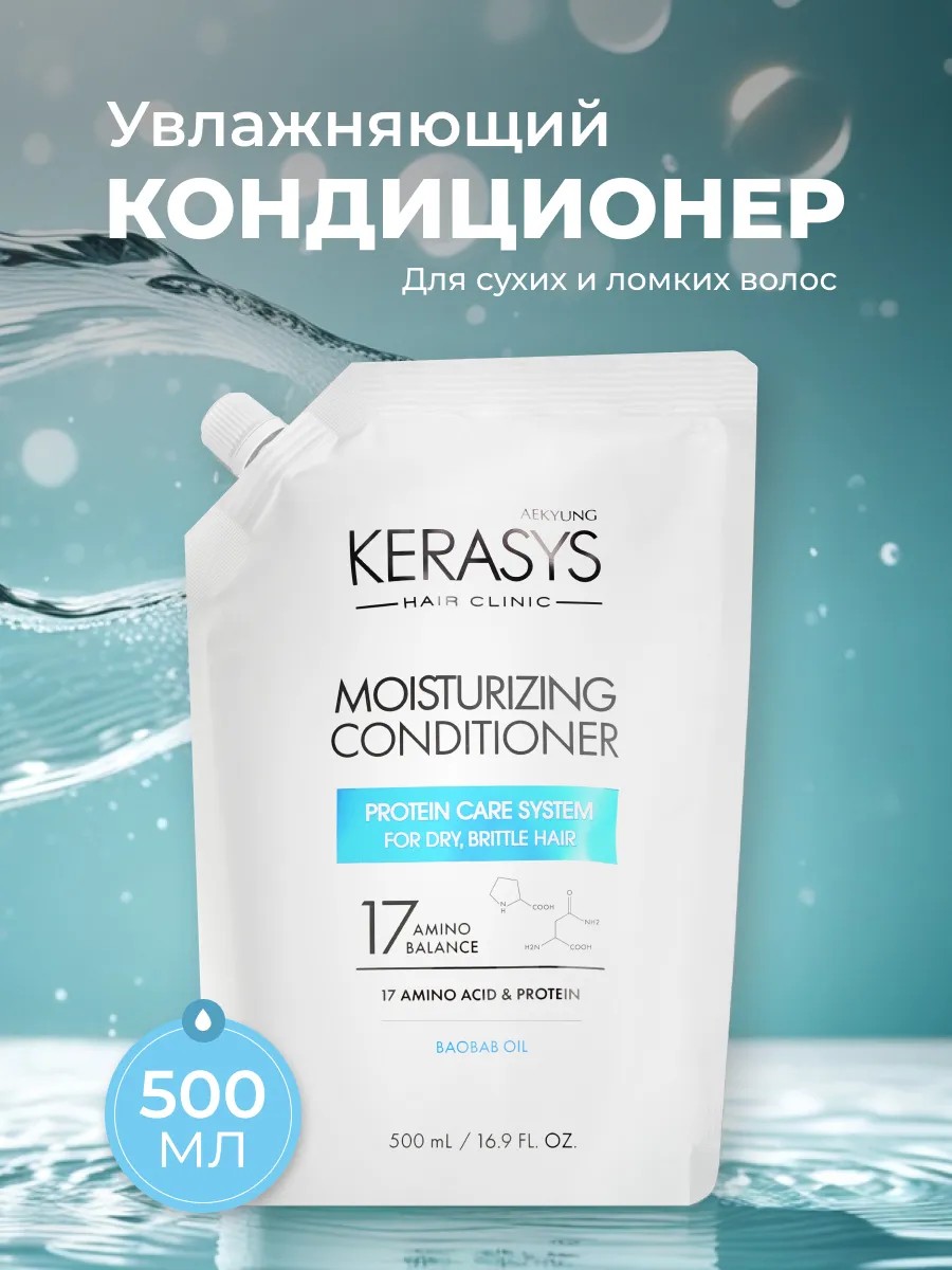Увлажняющий протеиновый кондиционер Kerasys с липосомами, обогащенными лечебными веществами, проникает в клеточные структуры волоса, оказывая восстанавливающее и лечебное действие.
