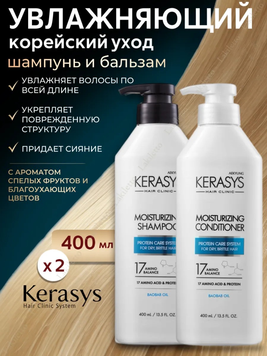 Kerasys Увлажняющий набор Шампунь + Кондиционер для волос обеспечивает уход профессионального уровня. Это средство от керасис идеально подходит для женщин, ищущих качественное восстановление и укрепление прядей. Корейская уходовая косметика славится своим бережным отношением к локонам, и этот набор не является исключением. Продукт создан для ухода за поврежденными и сухими волосами, обеспечивая их глубокую очистку и увлажнение, а в его формуле запатентованы инновационные технологии; кератин в составе помогает вернуть эластичность и блеск тусклым и ломким волосам, и если вас беспокоит выпаде, а использование этого продукта в комплексе с кондиционером поможет закрепить эффект от применения. Подходит как женской аудитории, так и мужчинам на регулярной основе, особенно рекомендуется мамам, которые хотят подарить себе момент расслабления в домашней обстановке после трудового дня. Шум корейского подхода к красоте заключается в деликатном обращении с кожей головы и заботе о каждом локоне индивидуально. Шампунь помогает защитить волосы от внешних факторов и придает им объем без утяжеления структуре волосяного покрова. Наличие дозатора способствует экономичному расходу средства за одно применение без необходимости частого пополнения запасов. Его удобство оценят все члены семьи благодаря стильной упаковке внутри ванной комнаты напоминающей о лаконичности азиатских брендов личной гигиены. Регулярное использование усилит видимый эффект: повышенная гладкость по всей длине волос — лишь одна из многочисленных позитивных характеристик шампуня!