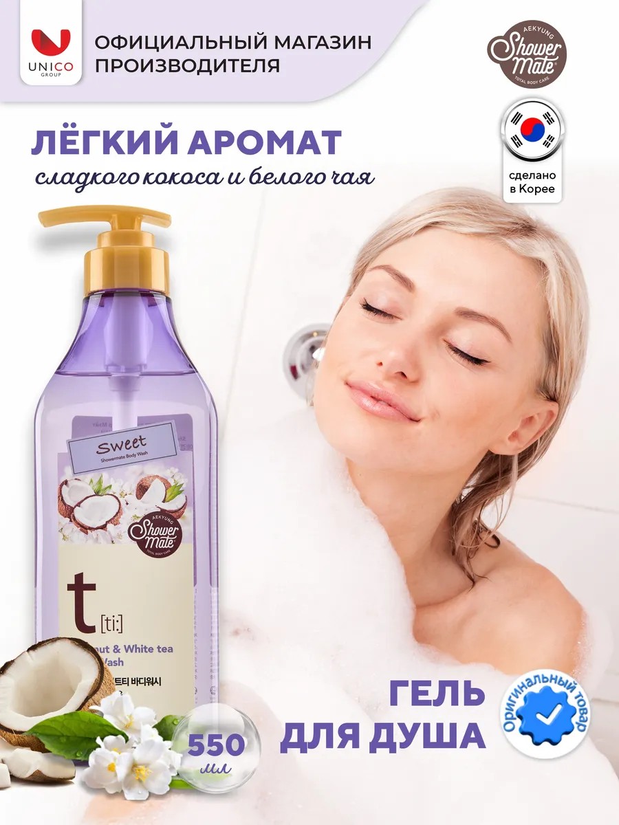 Подарите себе невероятный комфорт во время душа вместе с профессиональной уходовой корейской косметикой Shower Mate. Этот увлажняющий гель с тонким ароматом, который поможет вам сделать кожу идеально чистой, гладкой и нежной, а телу придать приятный сладко-сливочный запах. В составе ароматизированного геля - натуральные ингредиенты натуральный экстракт кокоса и экстракт белого чая. Он комплекс витаминов: бьюти средство насыщает клетки питательными веществами, делает кожу мягкой и красивой на долгое время. Также средство проникает глубоко вглубь слоев эпителия, что гарантирует интенсивное увлажнение. Антибактериальное средство не содержит вредных и опасных добавок (парабены, минеральные масла, триэтаноламин и бензофеноны), поэтому использовать его можно мужчинам и женщинам с сухой, проблемной, чувствительной и склонной к аллергии коже. Универсальный парфюмированный гель из Кореи подходит для мытья рук, ног и всего тела: при контакте с водой образуется плотная пенка, очищающие свойства которой позволят вам быстро и легко удалить все загрязнения. Косметика подходит для ванной, душа, бани и сауны и доступна в большом флаконе с дозатором объемом, поэтому парфюмерного геля хватит на долгое время.