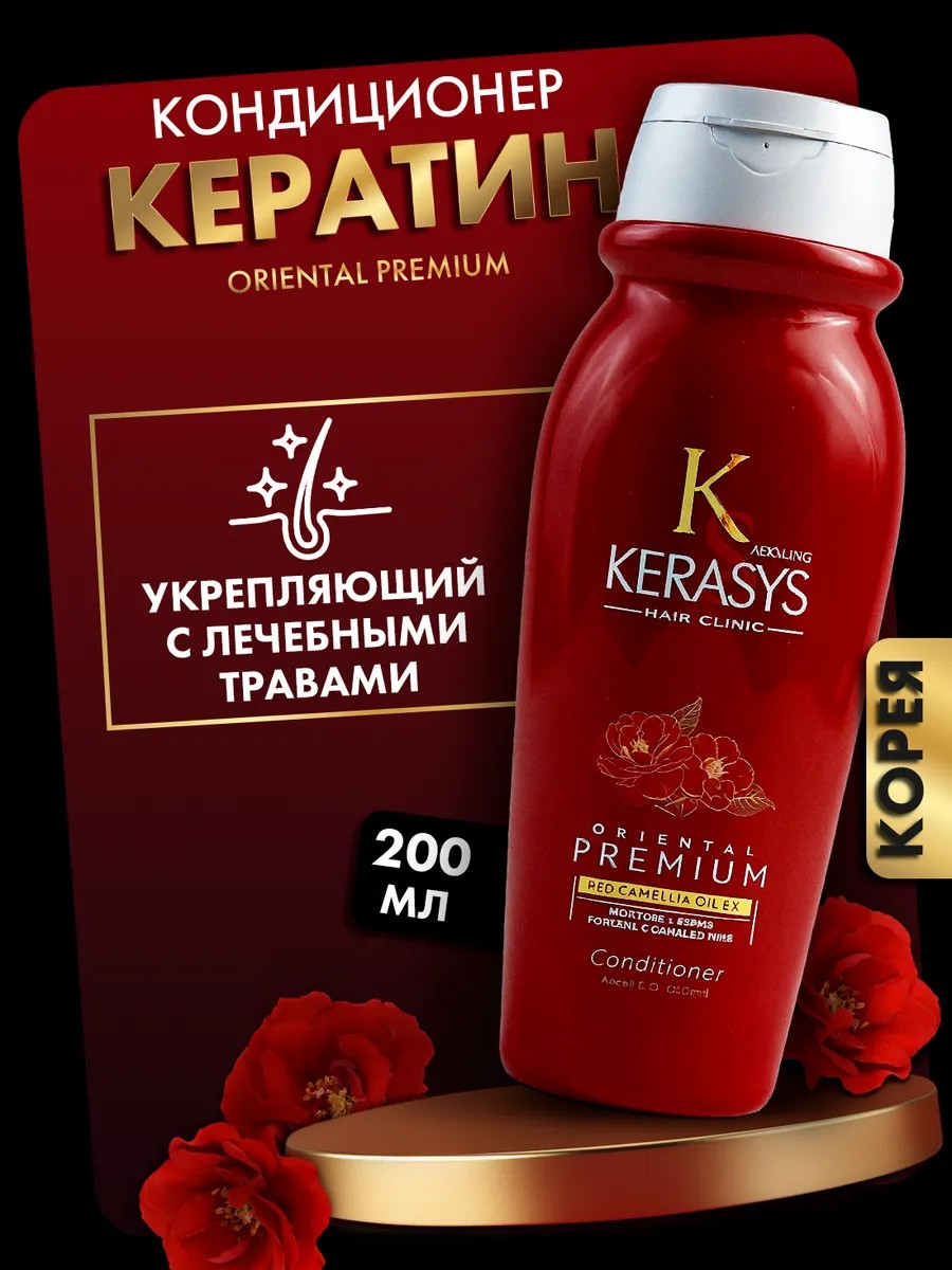 Кондиционер для волос женский Kerasys Oriental Premium 200 мл для профессионального ухода за волосами в домашних условиях. Бальзам ополаскиватель создан специально для всех типов волос, в том числе ослабленных и поврежденных. Универсальный кондиционер для волос имеет в своем составе кератиновый комплекс, который содержит ценные вещества, легко проникающие в клеточную структуру, заполняя собой все пустоты, трещины и оказывают лечебное действие.Органический экстракт жгун-корня способствует укреплению волос, предотвращает выпадение и способствует их активному росту. Экстракты натуральных трав, протеины и пантенол делают волосы послушным, гладким и шелковистыми по всей длине, придавая здоровый вид и блеск. Восстанавливающий бальзам от выпадения волос предупреждает раннюю седину, слабость волос, укрепляет корни и придает волосам объем. Кератиновый комплекс в составе корейского кондиционера отлично подойдет для кудрявых, непослушных и вьющихся волос, добавит недостающее увлажнение и блеск, а также предотвратит пушистость. Особенно важная составляющая уходовой косметики Kerasys для женщин, девочек-подростков это эффект UV-защиты в составе бальзама кондиционера для волос. Профессиональный кондиционер Корея является идеальным уходовым средством за волосами для ежедневного применения, популярным в косметологии и салонах красоты. Возьмите увлажняющий кондиционер для волос к себе ванну и косметичку, сделайте его своим ежедневным уходом за волосами и смело отправляйтесь в путешествие красоты, заботы и здоровья! Профессиональные шампуни и бальзамы для волос произведены корейским брендом Керасис в Корее. Профессиональный женский бальзам для волос — это отличный подарок близким! Он станет настоящим сюрпризом на новый год, день рождения или 8 марта маме, любимой, подруге и может смело войти в ваш подарочный набор декоративной и уходовой косметики! Красота и здоровье волос обеспечено вместе с Kerasys!