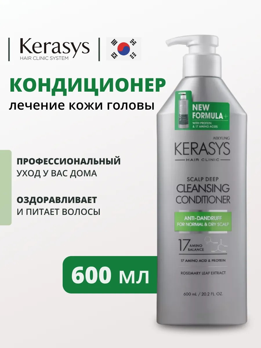 Кондиционер для волос Kerasys Освежающий разработан по специальной формуле для сухой и нормальной кожи головы, склонной к появлению перхоти и зуда. Корейский кондиционер обеспечивает глубокое питание волос и бережную заботу для сухой и нормальной, убирая избыток себума и восстанавливая защитный барьер кожи головы. Регулярное использование лечебного кондиционера нормализует работу сальных желез, снимает раздражение, предотвращает появление перхоти и зуда, облегчает расчесывание и укладку. Волосы обретают естественный блеск и здоровый вид. Основным компонентом этого средства является натуральный экстракт розмарина. Благодаря своим антиоксидантным и антибактериальным свойствам, он обеспечивает заживление и увлажнение сухой кожи головы. Кроме того, розмарин способствует улучшению циркуляции крови в коже головы, что положительно сказывается на состоянии кожи и волосяных луковиц.кондиционер KeraSys содержит климбазол, салициловую кислоту, экстракты хвои, белой лилии и розмарина, которые эффективно устраняют раздражение и предотвращают появление перхоти и зуда. Протеины пшеницы, этилпантенол, молочная кислота в составе заботятся о гладкости и кондиционировании волос, не делая их жирными. Бальзам для волос прошел дерматологические испытания. Средство подходит для секущихся, поврежденных вследствие частой окраски и обесцвечивания волос. Для большего эффекта используйте с шампунями и корейской косметикой для волос Kerasys.