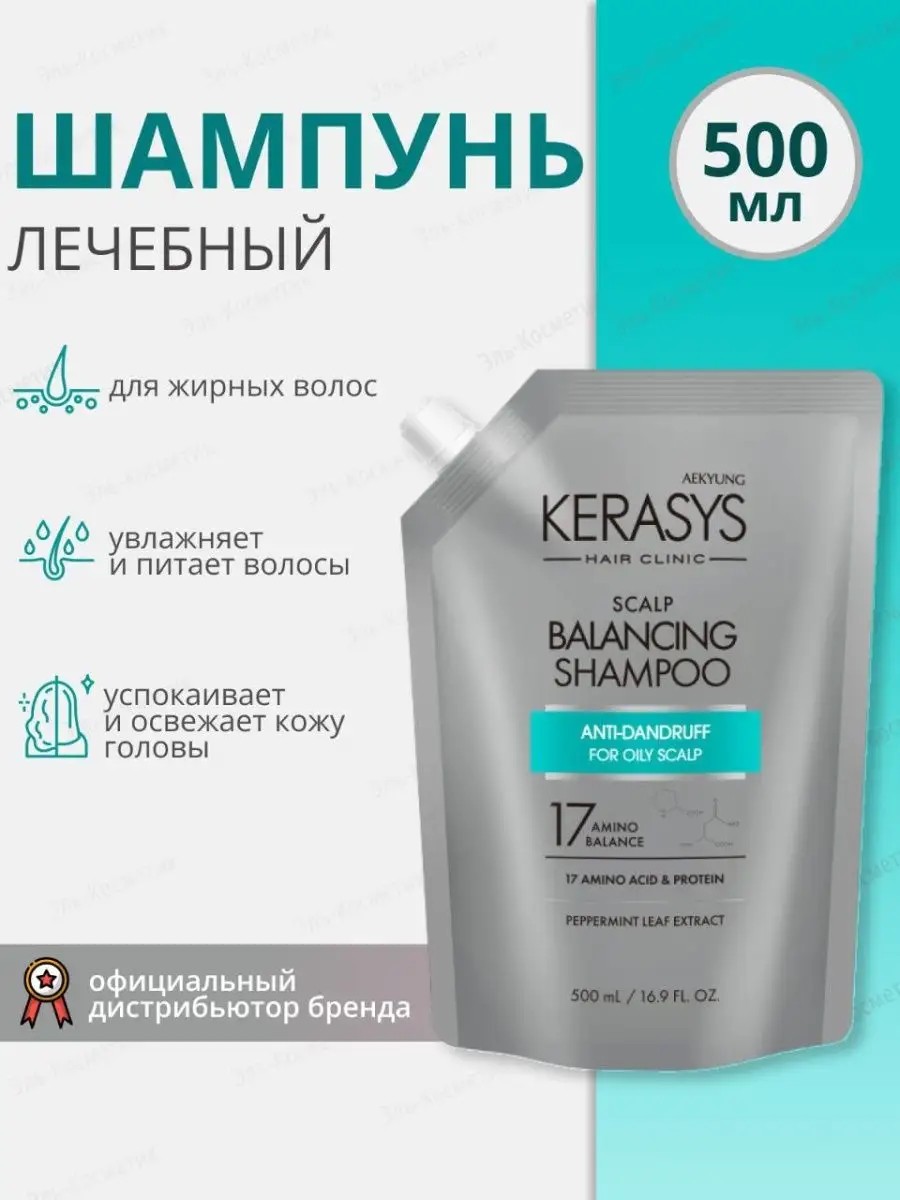 Шампунь для лечения кожи головы Scalp Care Balancing Shampoo kerasys запаска 500 мл специально разработанная формула для уход за жирной кожей головы. Мягко очищает, не вызывая раздражения. Придает ухоженный и здоровый вид волосам. Формула с применением климбазола и салициловой кислоты эффективно устраняет и предотвращает появление перхоти и зуда. Корейский шампунь для женщин и мужчин . Шампунь керасис . Шампунь против перхоти. В составе шампуня перечная мята. Подходит шампунь для чувствительной кожи головы. Против перхоти волос. Шампунь освежающий. Шампунь для волос профессиональный.Шампунь для волос против перхоти.