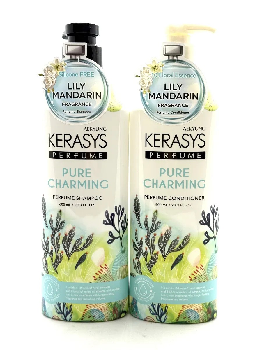 KERASYS PURE & CHARMING Perfumed Shampoo and Conditioner Set, 600ml. Kerasys products are very popular in Korea and have become a favorite among women from around the world, including Germany, Finland, France, and Italy. This specially developed formula for dry and brittle hair provides professional care, strengthens roots and promotes hair growth, and prevents hair loss and dandruff. It instantly moisturizes and restores hair structure along the entire length, reducing split ends and breakage in fine, porous, and curly hair. Hair regains vitality, shine, and silkiness. The aromatherapy shampoo contains panthenol (provitamin B5), white lily, and gardenia extracts. This restorative shampoo is suitable for both men and women, as well as blondes and sensitive scalps. It will appeal to those with dyed, bleached, and gray hair. Can replace sulfate-free shampoo, as it contains mild cleansing ingredients. Exclusive Kerasys fragrances will highlight your individuality. Aroma: a clean and fresh aroma like the coolness of an early spring morning. Will give you incredible charm and unique appeal. Perfume composition: Top note: bergamot, mandarin, green mandarin. Middle note: lily of the valley, peach blossom, pink rose. Base note: cedar, musk, cardamom. The shampoo and conditioner set will make a wonderful gift set for women and men. We also recommend trying Kerasys moisturizing art. 35458267. Or medicated shampoo with menthol art. 24927778. The store assortment includes shampoos in soft packaging, refills, and refills art. 24694516. Search queries: 1 liter 200 ml Kerasus Architect 1000 ml dry oil-free gel-highlighted keratin oil solid tint against deep cleansing skin volume shower purple natural daily pro hypoallergenic girls strength dispenser cold eco pro protection shine 1000 ml thick strength care after