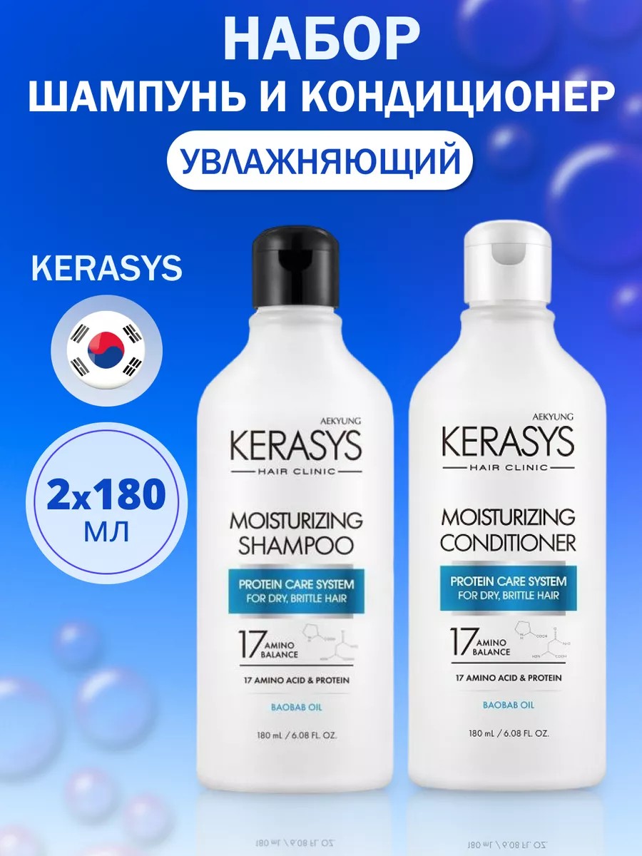 | Комплектация | KERASYS Clinic Кондиционер для волос Увлажняющий, 180 мл - 1 шт; KERASYS Clinic Шампунь для волос Увлажняющий 180 мл - 1 шт |