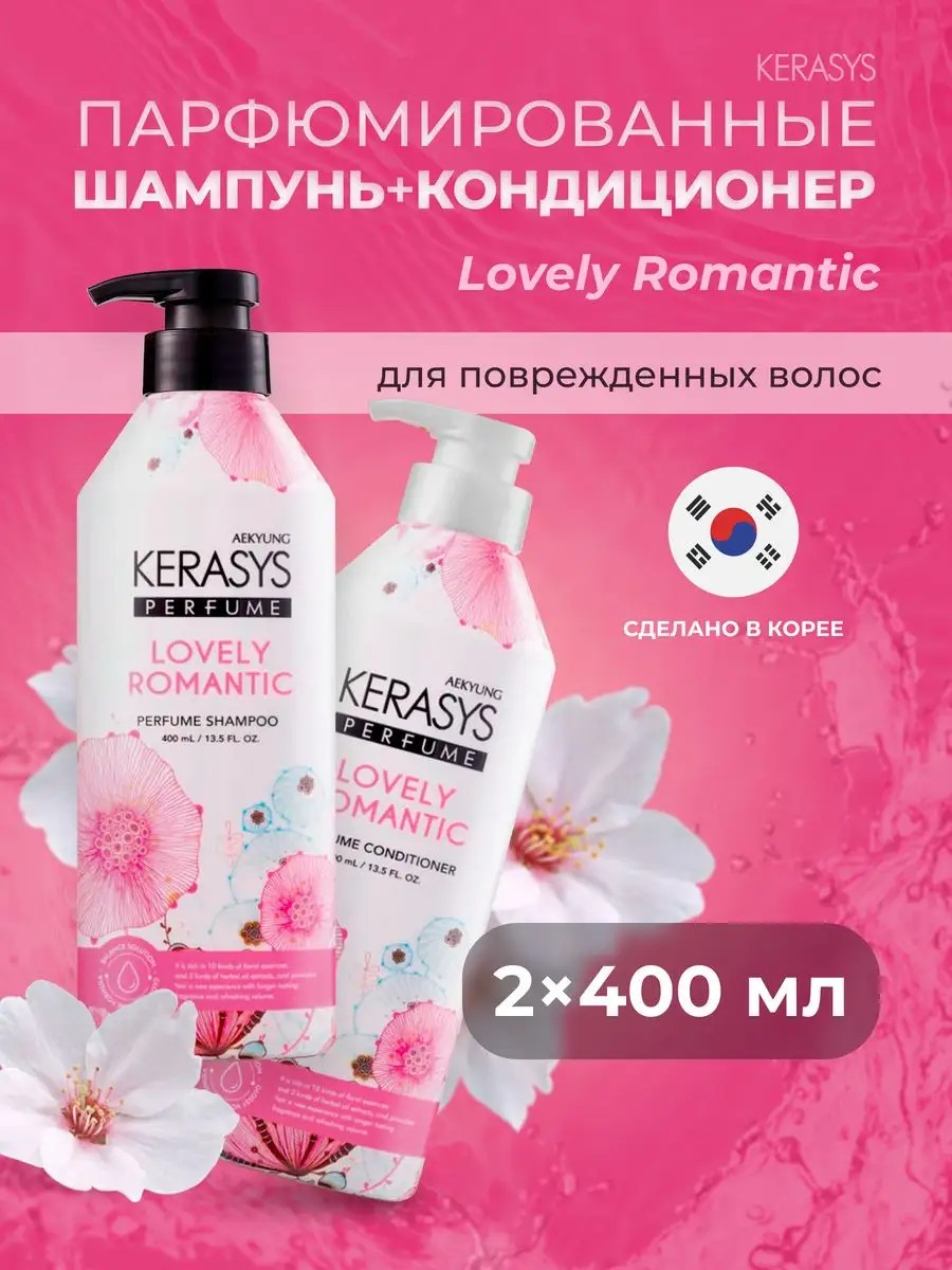 KeraSys presents a unique line of professional scalp and hair care products. The "Romantic" perfumed shampoo and conditioner for women are specially formulated for damaged hair with split ends. After washing with the shampoo and conditioner, hair becomes not only silky, flowing, and shiny, but also fragrant. It's all down to the perfumed formula of these products. This Korean shampoo and conditioner for women are enriched with highly effective active ingredients that keep hair silky and soft. Key active ingredients: Daisy extract has antimicrobial, antioxidant, anticarcinogenic, and antifungal properties. Basil flower and leaf extract makes hair more elastic, bouncy, and voluminous. It helps maintain volume for a long time. Wheat protein hydrolysate has a moisturizing and strengthening effect, adding shine, increasing elasticity and density, and preventing aging. Many shampoos and conditioners have a pleasant scent, but with "Romantic," the effect lasts for several hours. The aroma: romantic and sensual, it's beautiful and unique, like first love. Subtle notes of jasmine and magnolia will inspire a feeling of happiness and bliss. Exclusive Kerasys fragrances will highlight your individuality. Daily use of the Kerasys set will not only improve the condition of your hair but also help strengthen its roots. This women's shampoo and conditioner set is an excellent gift option for women of any age: from teenagers to adults, for March 8th, February 14th, birthdays, New Years, and other holidays, for a girlfriend, mother, grandmother, sister, or friend.