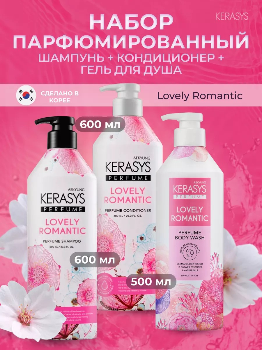 KeraSys – представляет уникальную линейку профессиональных ухаживающих средств для кожи головы и волос. Парфюмированный шампунь и кондиционер для волос женские и гель для душа«Романтик» - специальные средства для ухода за телом и поврежденными волосами с секущимися концами. После мытья шампунем и бальзамом волосы становятся не только шелковистыми, струящимися и блестящими, но и ароматными. Корейский шампунь и бальзам для волос женский обогащены высокоэффективными активными компонентами. Основные действующие компоненты: Экстракт маргаритки обладает противомикробными, антиоксидантными, антиканцерогенными и противогрибковыми свойствами. Экстракт цветов и листьев базилика делает волосы более эластичными, упругими и объемными. Помогает сохранить объем надолго. Гидролизат протеинов пшеницы оказывают увлажняющее и укрепляющее действие, придают волосам блеск, повышают эластичность и плотность.