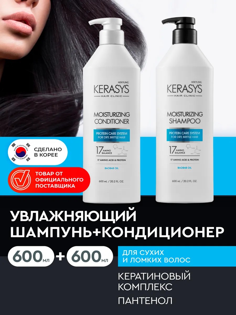 Косметический набор шампунь и бальзам для волос Увлажнение Hair Clinic System Moisturizing от корейского бренда Kerasys создан для сухих и ломких волос.
