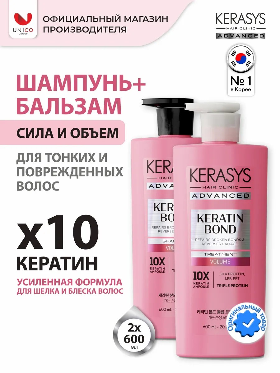 Кератиновый Уход для восстановления эластичности и объема поврежденных, ослабленных, тонких волос без объема с коллагеном, биотином (витамин В7), экстрактом черной фасоли. Advanced Bond от Kerasys лучший выбор для красоты Ваших волос.