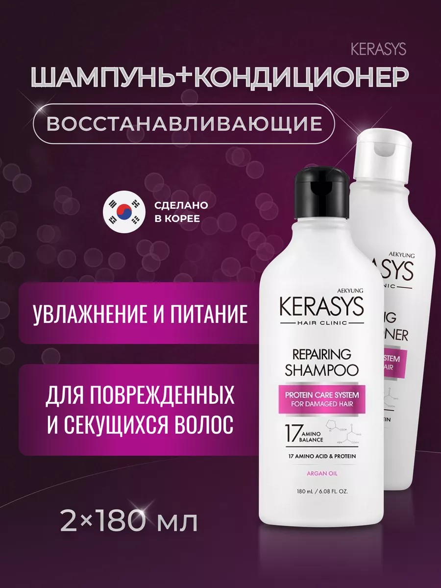 KeraSys – представляет уникальную линейку профессиональных ухаживающих средств для кожи головы и волос. Шампунь и кондиционер "Восстанавливающий" разработаны для сухих, ослабленных и пережжённых волос. Этот профессиональный продукт из Кореи разработан специально для женщин, которые ценят качественный уход за своими волосами. Специальная формула мгновенно восстанавливает структуру волос по всей длине, уменьшая сечение и ломкость. Волосы обретают жизненную силу, эластичность и блеск. Шампунь и кондиционер обогащены лечебными веществами в составе липосом, которые проникают в клеточные структуры волоса и оказывают восстанавливающее и лечебное действие. Кератиновый комплекс заполняет поврежденные участки, трещинки и пустоты в структуре волоса, склеить посеченные кончики, укрепить волосы, придав им дополнительную прочность. Кератин подходит для восстановления волос любого типа. Аргановое масло повышает эластичность и восстанавливает нормальный уровень увлажнённости, делает волосы мягкими и шелковистыми, укрепляет структуру и снимает электризуемость. Мини шампунь и бальзам в дорогу придают ухоженный и здоровый вид волосам. Они также восполняют недостаток собственного белка в структуре волос, делая их более крепкими и здоровыми. Это особенно важно для поврежденных вследствие частого химического, теплового и солнечного воздействия волос. Набор также подходит для окрашенных, светлых, обесцвеченных и кудрявых волос. Дорожный набор шампунь и бальзам - отличный подарочный вариант для женщины или мужчины любого возраста: от подростка до взрослого человека на 8 марта, 14 февраля, 23 февраля, День рождения, Новый год и др праздники для любимой девушки или парня, мамы или папы, бабушки или дедушки, сестры или брата, подруги или друга. Очаруйте всех своими шикарными локонами, благодаря уникальному косметическому средству от корейских производителей.