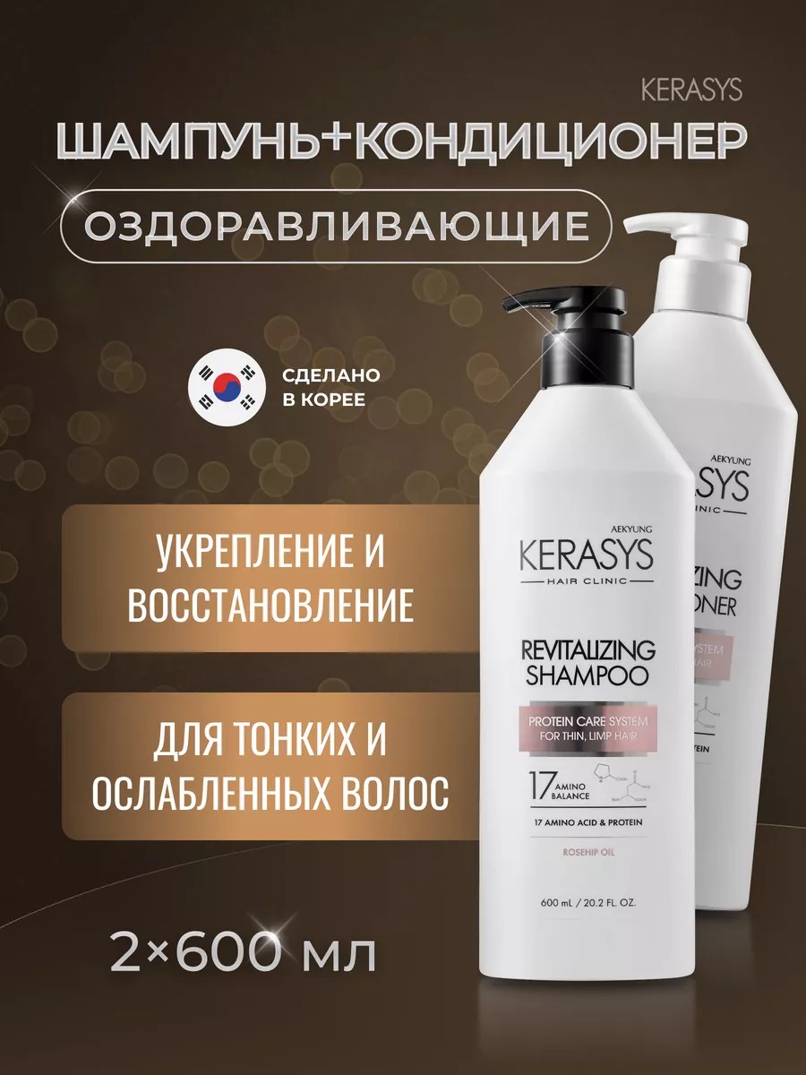KeraSys – представляет уникальную линейку профессиональных ухаживающих средств для кожи головы и волос. Шампунь и кондиционер "Оздоравливающий" разработаны для тонких и ослабленных волос. Этот профессиональный продукт из Кореи разработан специально для женщин, которые ценят качественный уход за своими волосами. Специальная формула мгновенно укрепляет и восстанавливает структуру волос по всей длине. Волосы обретают жизненную силу, эластичность и объем. Шампунь и кондиционер обогащены лечебными веществами в составе липосом, которые проникают в клеточные структуры волоса и оказывают восстанавливающее и лечебное действие. Кератиновый комплекс заполняет поврежденные участки, трещинки и пустоты в структуре волоса, склеить посеченные кончики, укрепить волосы, придав им дополнительную прочность. Набор также подходит для окрашенных, светлых, обесцвеченных и кудрявых волос. Кератин подходит для восстановления волос любого типа. Витамины А и Е питают и увлажняют волосы, делая их более сильными и эластичными. Шампунь и бальзам придают ухоженный и здоровый вид волосам. Они также восполняют недостаток собственного белка в структуре волос, делая их более крепкими и здоровыми. Это особенно важно для тонких, ослабленных, негустых волос, которые плохо поддаются укладке. Интенсивная густая структура мягко обволакивает каждую волосинку и высвобождает энергию, благодаря чему увеличивается объем и густота волос. Набор шампунь и бальзам - отличный подарочный вариант для женщины или мужчины любого возраста: от подростка до взрослого человека на 8 марта, 14 февраля, 23 февраля, День рождения, Новый год и др праздники для любимой девушки или парня, мамы или папы, бабушки или дедушки, сестры или брата, подруги или друга. Очаруйте всех своими шикарными локонами, благодаря уникальному косметическому средству от корейских производителей.