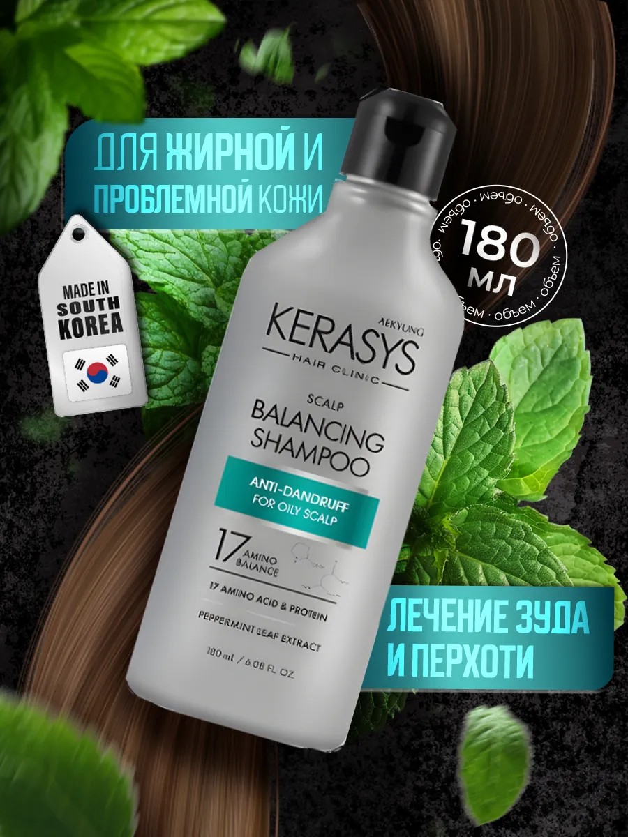 Шампунь для волос профессиональный от перхоти KeraSys Scalp Balancing 180 мл. для жирной и проблемной кожи головы склонной к зуду и перхоти. Маленький бутылек отлично войдет в ваш чемодан или косметичку для путешествий.