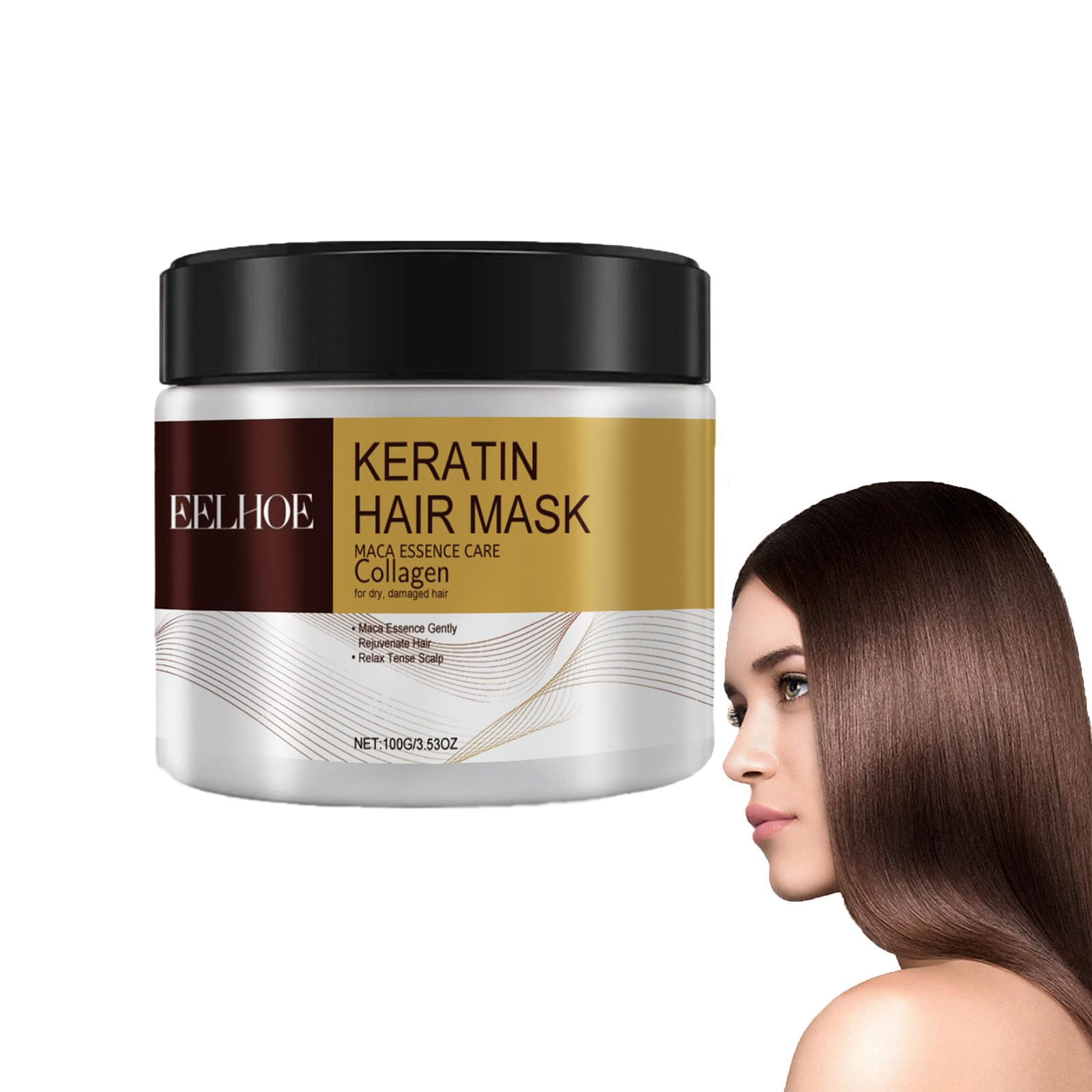 Features: Enriched with collagen, argan oil, this hair treatment is designed to effectively rejuvenate dry and damaged hair. Delving deep into the hair shaft, it delivers powerful hydration, resulting in noticeably smoother and glossier locks. Versatile in its application, it is suitable for all hair types, including those that have been color treated or subjected to chemical processing. Free from parabens and sulfates, its gentle enough for daily use, even for people with dry, damaged, or color-treated hair. Specification: Name:Repair and moisturizing hair mask Net weight: 100g Gross weight: 114g Product size: 5.5X5.5cm Package Included: 1*Repair and moisturizing hair mask?Suitable Hair Type?The hydrating hair mask is specially formulated to treat extra-dry, damaged,over-processed and color-treated hair. Dry and sensitive hair should use moisturizing hair care products with high protein.If it is extremely chaotic,dry hair,you can use the hair mask to deeply nourish the hair that is damaged and difficult to maintain,so that it can be shiny,and smooth,our hair mask is great for dry hair. ?Healthy Hair Texture?:Our hydrating hair mask helps restore hair while dealing with split ends,hair breakage,frizziness.It assists with hair damage caused by sun exposure,blow-drying,coloring. ?Moisturizing and Smoothing?:Our hair mask can replenish nutrients to the hair,increase the protection of the cuticle,and promote the overall health of the hair.Its natural ingredients can be quickly absorbed by the hair and penetrate deeply into the hair shaft, providing a powerful moisturizing effect,making the hair visibly smoother and shinier,restoring dull and dry hair,improving its manageability and elasticity,and giving it a beautiful shine. ?Repair Damaged Hair?:Our hair mask is specially designed for the care of dry and damaged hair.It is also rich in plant extracts,including argan oil and jojoba oil,which can bring moisture and shine. ?Keratin Hair Mask?:This keratin hair mask treatment is designed to effectively rejuvenate dry and damaged hair.It helps you achieve stronger, sleeker hair naturally.Our ?keratin hair mask? binds to the follicles of each strand,smoothing frizz and flyways.