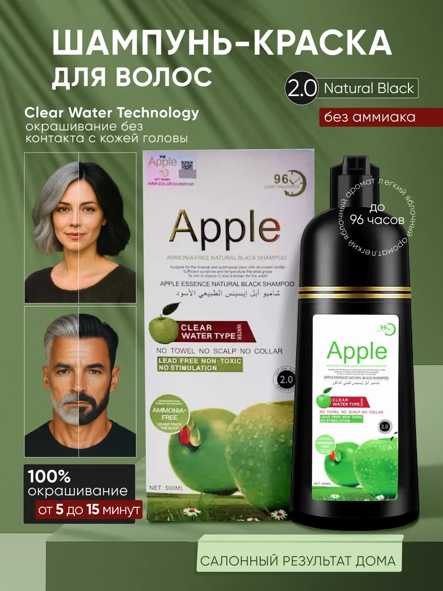 Яблочный шампунь - краска от седины натурально черный 2.0