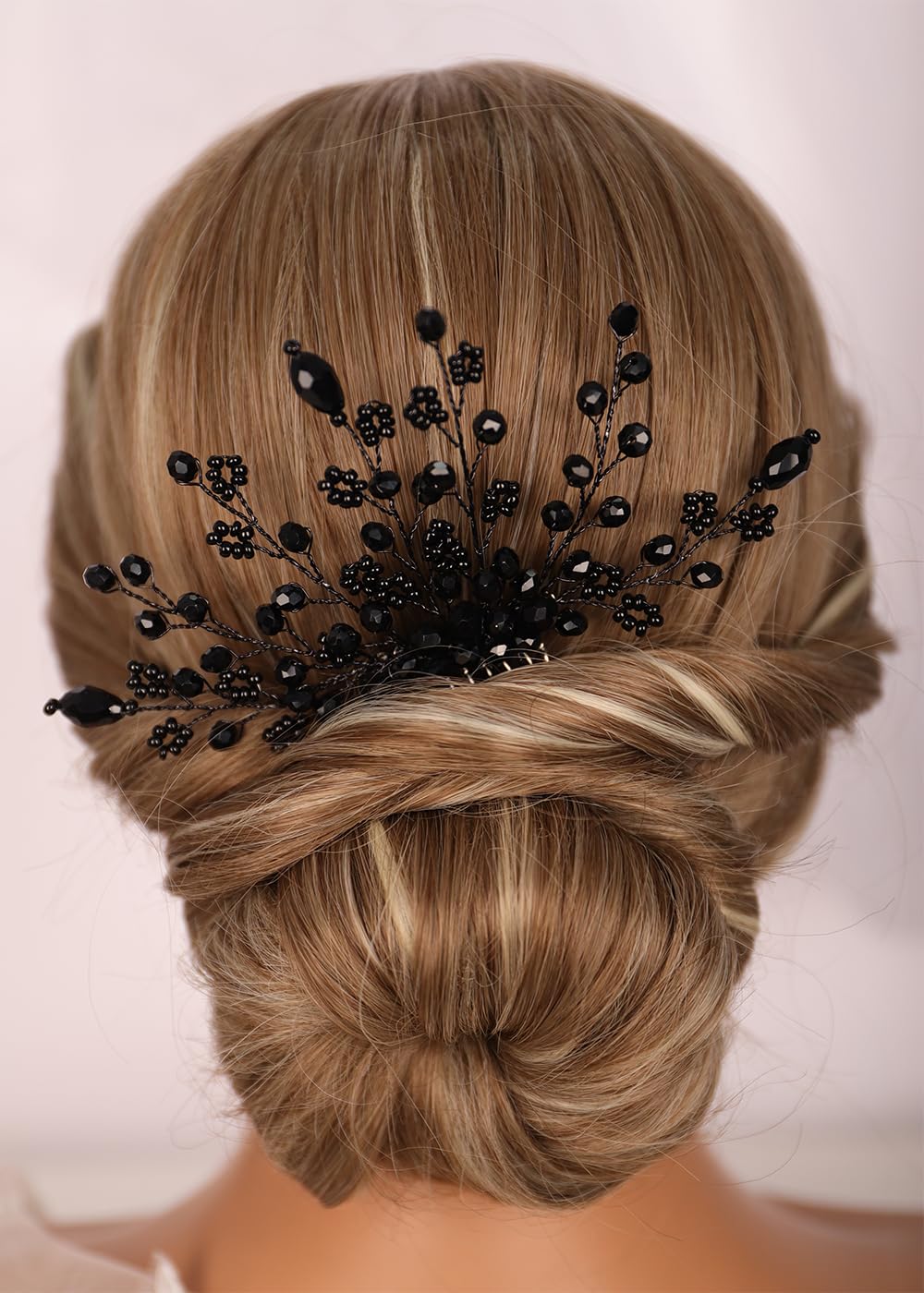 Kercisbeauty Black Beads Branch Hair Comb for Women Girls Wedding Bridal Black Hair Accessories