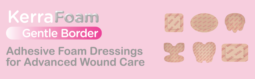 HOSPITAL GRADE TREATMENT: KerraFoam Gentle Border is used for wound management in some of the largest hospitals and post-acute facilities around the world. ADVANCED OUTER LAYER: The smooth low-friction top film glides easily against fabric or clothing, makes the dressing resistant to water and outside contaminants and ensures that the wound does not become dry during use. GENTLE ADHESIVE: These bordered foam dressings use a soft silicone to ensure gentle adhesion, excellent absorption rate and non traumatic removal for improved wound management. SUPERIOR ABSORPTION AND RETENTION: These foam adhesive dressings are designed with an extra-absorbent core and foam pad to lock in drainage and bacteria to provide optimal moisture balance at the wound site.
