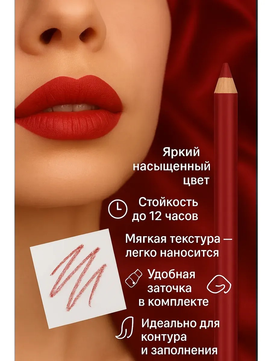 Такой продукт ищут по фразам: карандаш для губ красный, контурный карандаш красный оттенок, стойкий карандаш для губ алый, карандаш под красную помаду, красный карандаш для макияжа, губной лайнер бордо, матовый карандаш губы красный, губной карандаш с точилкой, красный карандаш для губ купить, красная классика карандаш губы. Этот вариант отвечает всем этим запросам.