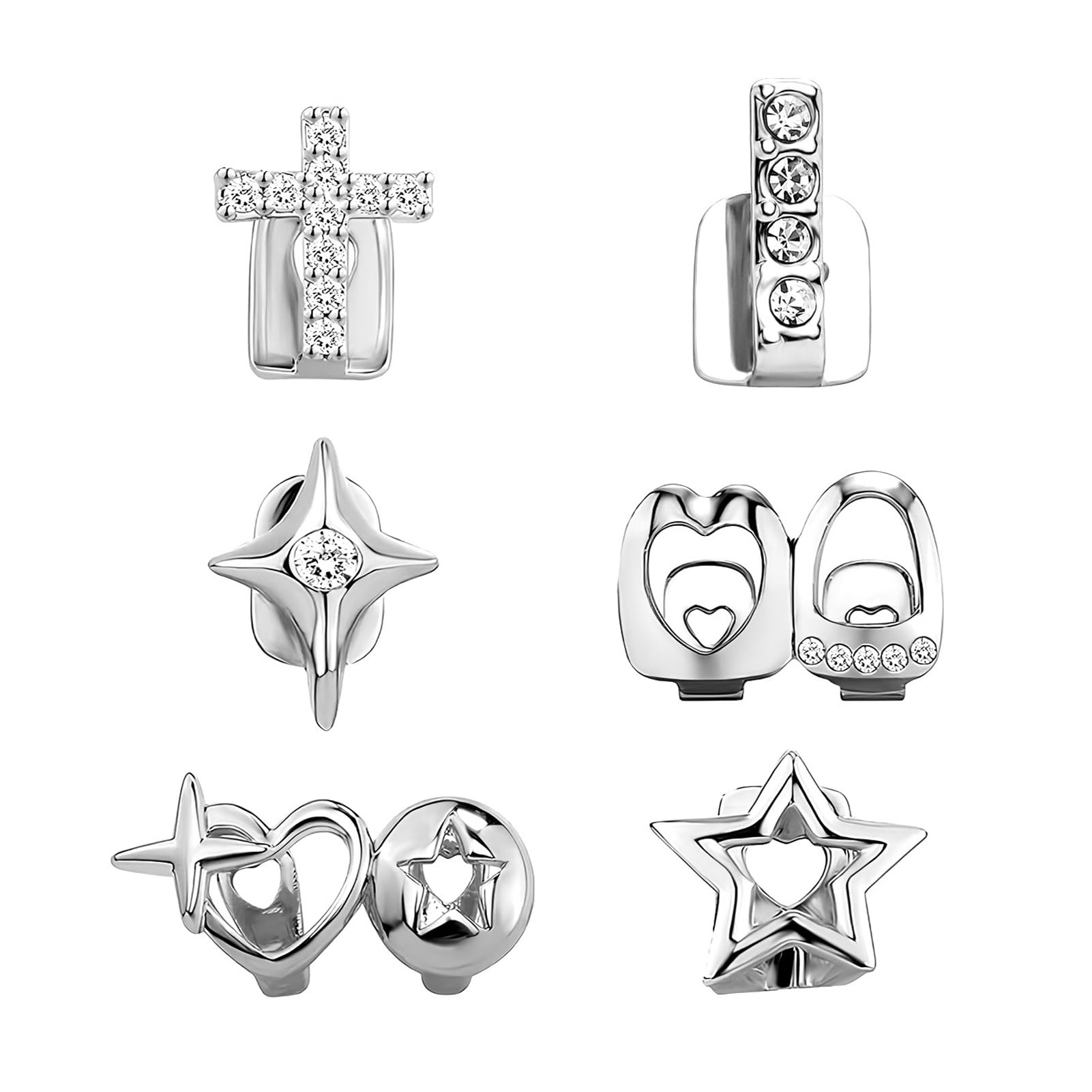 kesurpae 6pcs Caps Gnashers Fashionable Bling Silver Grills Reusable Grills Fake Tooth Unisex Punk Set for Occasions in Silvery