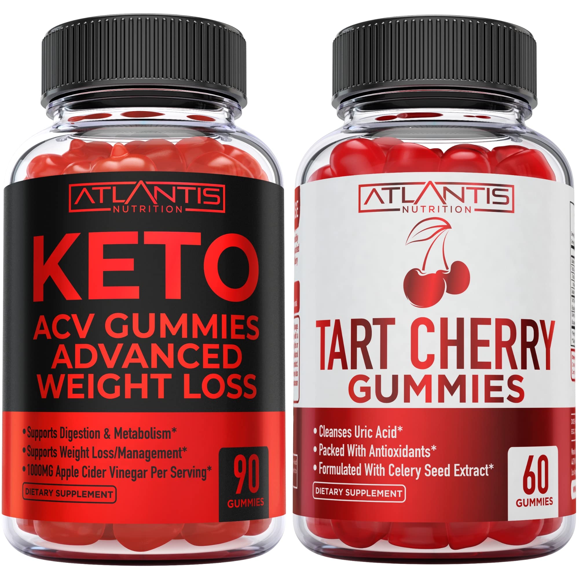Made In The USA - Made In The USA With Only The Finest Ingredients, Our ACV Keto Gummies Are Vigorously Lab Tested For Purity Potency To Ensure That You're Getting The Best Product On The Market. That's The Atlantis Nutrition Standard!. USA Cherry Tart Supplements - Support your day-to-day wellness and do a Uric Acid flush with these natural tart cherries gummies. Made in the USA, our natural cherry supplements do not contain any harmful additives or fillers. Delicious Apple Flavor - If You're Hesitant To Try Apple Cider Vinegar Due To Its Strong Unpleasant Acidic Taste, Our ACV Keto Gummies Are The Perfect Solution! You'll Love Taking These Gummies Every Day. Plus, They Still Have All The Benefits Of Traditional ACV, Making Them A Great Choice For Those Looking To Improve Their Health Wellness!. Tart Cherry Supplement Support - Our tart cherry chews are chock full of antioxidants that fight against premature aging. These tart cherry extract gummies may also be used as a uric acid cleanse by helping ease uric acid build up. Advanced Weight Loss Support - Apple Cider Vinegar Has Long Been Used For Its Potential Health Benefits, Including Weight Loss. Boost Your Metabolism, Curb Unwanted Cravings Enjoy The Powerful Detox Benefits Of Our Keto ACV Gummies!.