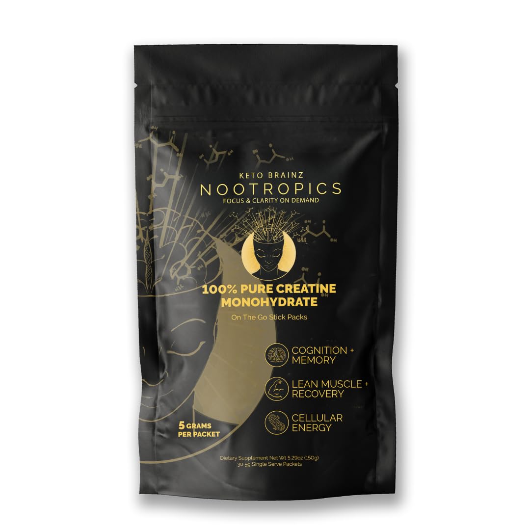 Keto Brainz Nootropics 5g Creatine Travel Packs 30 Single-Serve Stick Packs Pure Creatine Monohydrate Portable Pre-Measured Powder