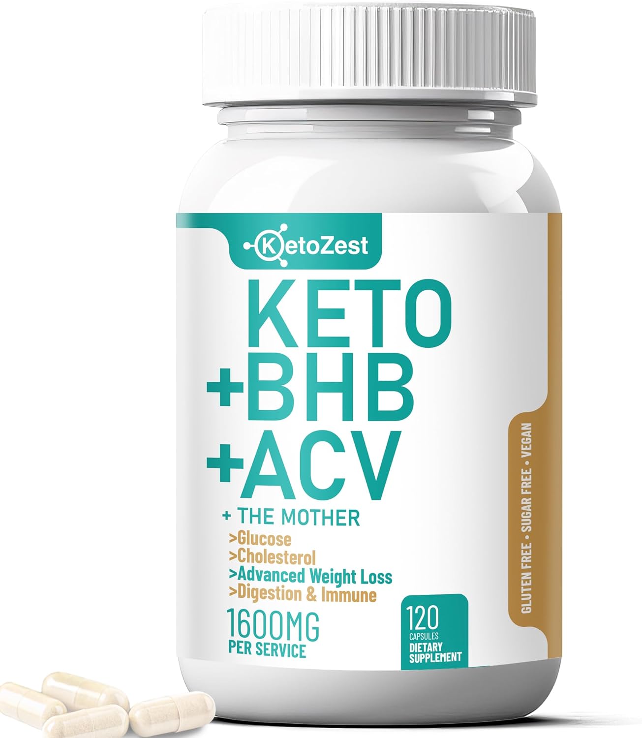 KetoZest ACV BHB Capsules 1600mg for Advanced Weight Loss - 120 Capsules