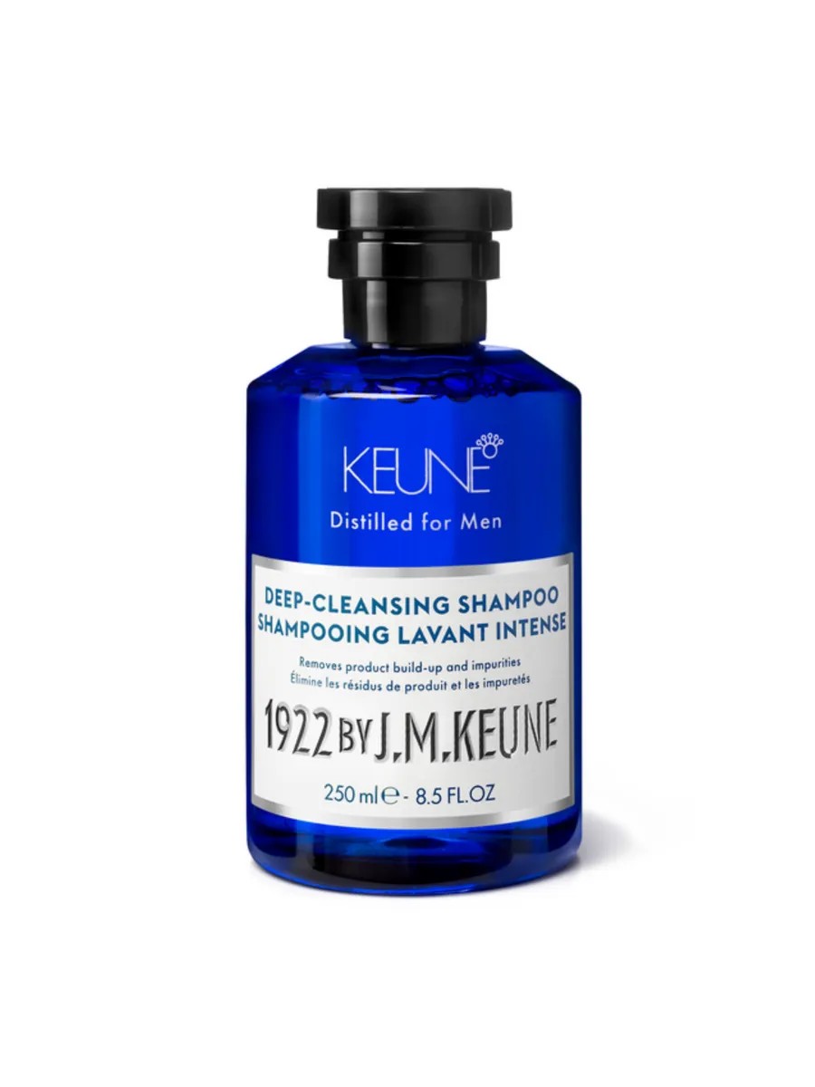 Шампунь очищающий Keune 1922 Deep-cleansing глубоко и деликатно очищает кожу, удаляет накопленный стайлинг и нежелательные сильные загрязнения Активные ингредиенты: креатин, экстракт конопли, экстракт бамбука