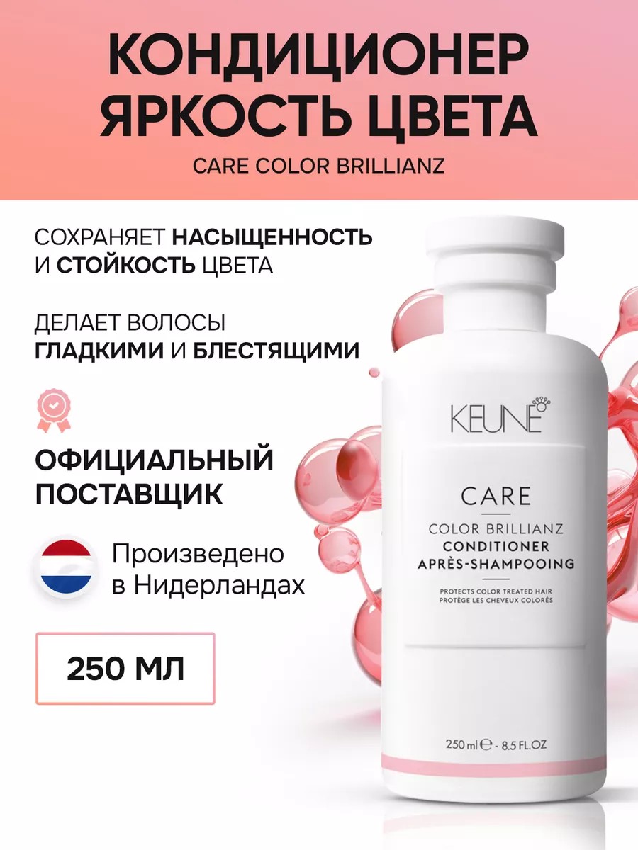 Питательный кондиционер для окрашенных волос Color Brillianz Conditioner Keune создает защитный слой вокруг волоса, чтобы предотвратить выцветание. UVA и UVB фильтры защищают волосы от вредного воздействия солнца. Между тем, экстракт семян подсолнечника питает и делает волосы блестящими. Нанесите на влажные волосы и оставьте на 1 - 3 минуты. Тщательно смойте. Объем: 250 мл.
