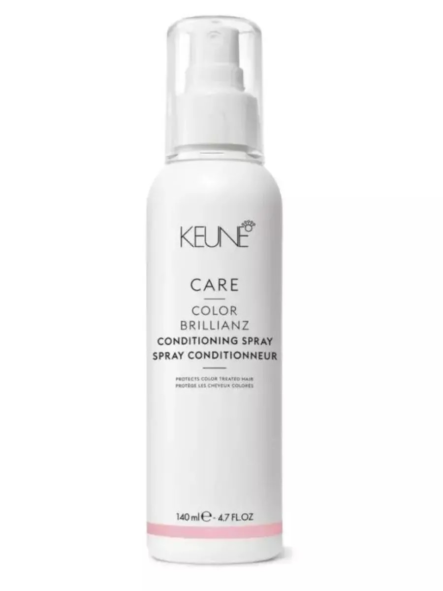 Keune Care Color Brillianz Conditioning Spray, 140 ml. This leave-in conditioner spray, with its unique color protection technology, forms a protective layer around the hair shaft for long-lasting color. LP 300 color stabilizer, solamer, and sunflower seed extract block harmful sun rays, preventing fading, and protects against free radicals. Keune Color Brillianz Conditioning Spray, a conditioner for colored hair, makes combing easier and seals the cuticle. Contains UVA and UVB filters to protect curls from the sun's harmful rays. Deeply conditioning ingredients add shine and softness to your locks. Active ingredients: UVA and UVB filters. Result: Keune Color Brillianz Conditioning Spray provides maximum color protection. Our brand is the impression people get when they think of us. A strong brand is authentic, unique, different from others, and cares about every member of its vast international family.