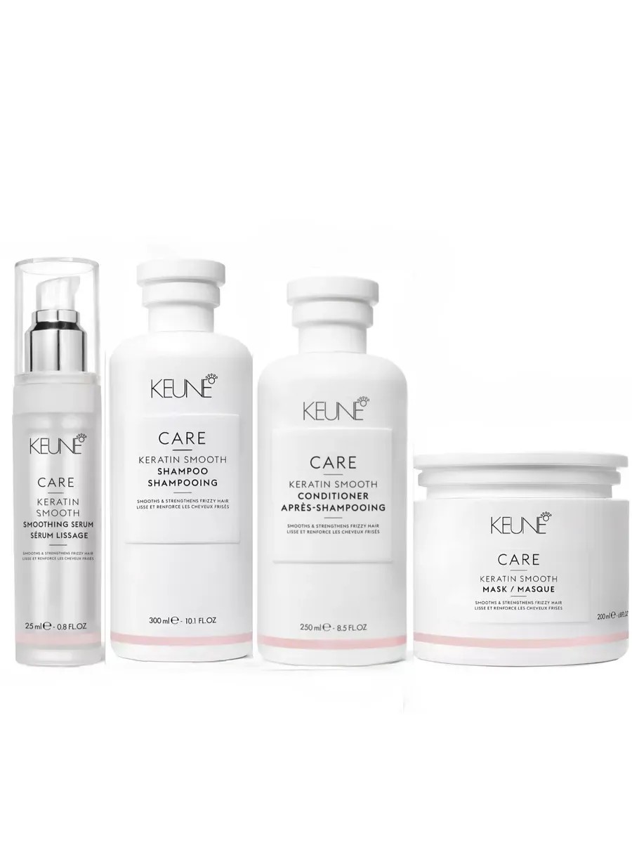Представляем Вам главного помощника по профессиональному уходу за волосами - Набор кератиновый комплекс от Нидерландского бренда KEUNE – Keratin Smooth. Набор состоит из шампуня, кондиционера, маски и сыворотки - настоящей основы для ухода за волосами.