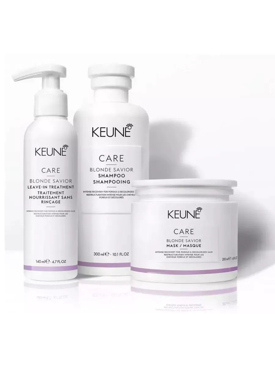 Представляем Вам главного помощника по профессиональному уходу за волосами - Набор Безупречный Блонд от Нидерландского бренда KEUNE – Care Blonde Savior. Набор состоит из шампуня, кондиционера и маски - настоящей основы для ухода за волосами.